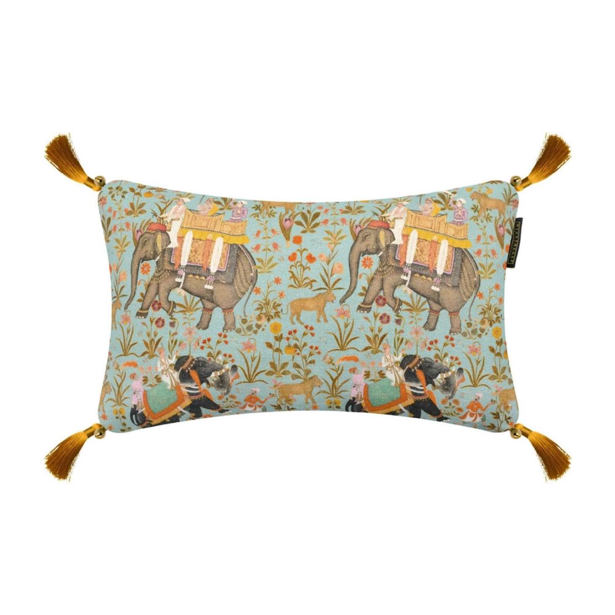 I love this cushion for its vibrant, playful design and versatile colour palette. The Hindustan cushions work particularly well in eclectic or bohemian interiors, adding a pop of colour and visual interest to sofas or armchairs. They also lend themselves nicely to children's rooms or cosy reading nooks, thanks to their whimsical pattern. Practical styling tips include pairing it with neutrals to make the design stand out or combining with other cushions in complementary shades for a layered, inviting look. The tassels add a charming detail that brings a touch of texture, making it ideal for casual, relaxed spaces.
