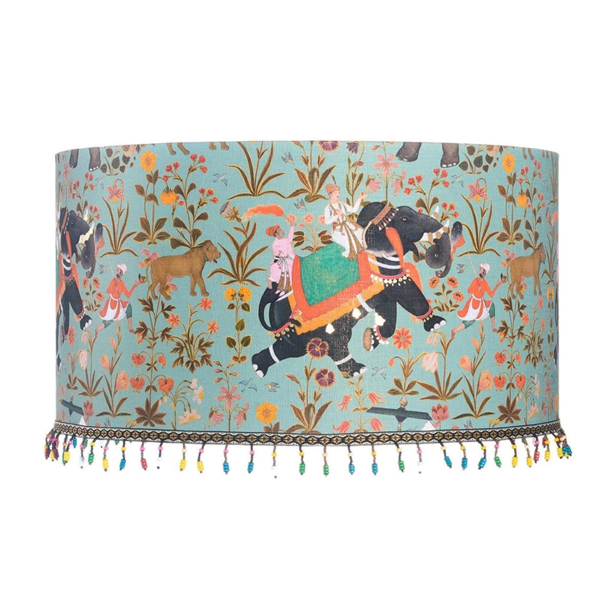 Add a touch of exoticism to your interior with this Hindustan lamp shade from MINDTHEGAP. Inspired by the vibrancy of India, it’s adorned with Indian elephants and lions against a floral background. A statement making piece, it’s finished with a reflective gold lining that will cast a warm glow on your living space.