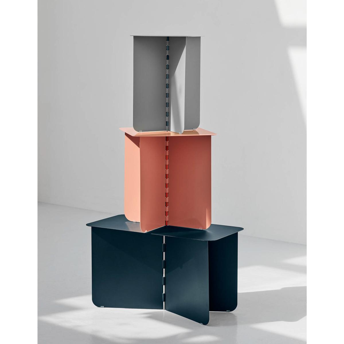 Hinge steel side table 45 cm from Dutch PUIK is made of powder coated steel and consists of two linked plates and is inspired by traditional door hinges. The modern, industrial design makes this side table both exciting and practical. Hinge steel sideboard 45 cm can be used as a side table or a living room or as a nightstand next to a bed.