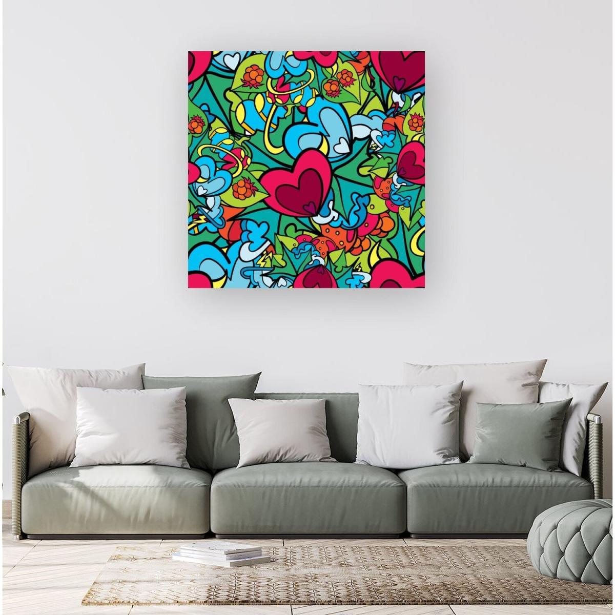 Hippie Psychedelic Pattern Canvas Print - Green / Large