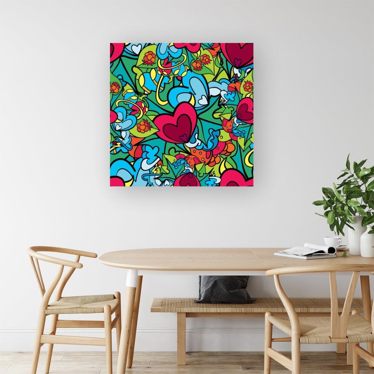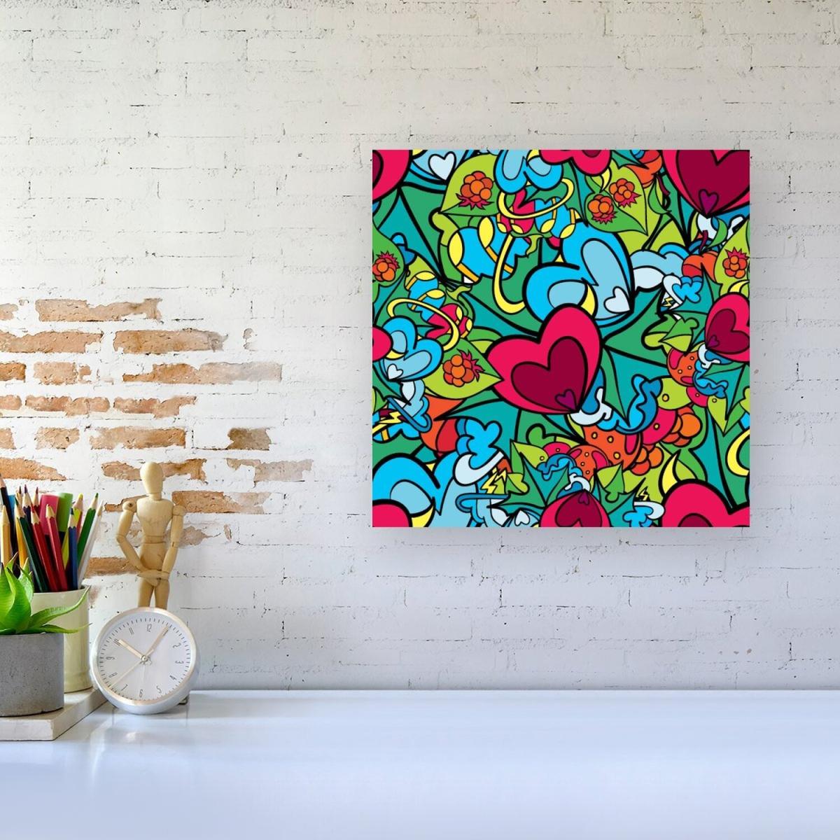 This hippie psychedelic pattern canvas print makes a bold statement with its vibrant colours and playful design. It works particularly well in eclectic, bohemian, or modern interiors that embrace colour and personality. I love it as a focal point above a neutral sofa or as part of a gallery wall in a living space that’s full of character. To style it effectively, keep surrounding decor simple and allow the artwork to stand out-pair with natural textures, like rattan or wood, to complement its retro vibe. Because of its lively design, it’s best suited for spaces where you want to inject some fun and visual interest, rather than delicate or understated settings.