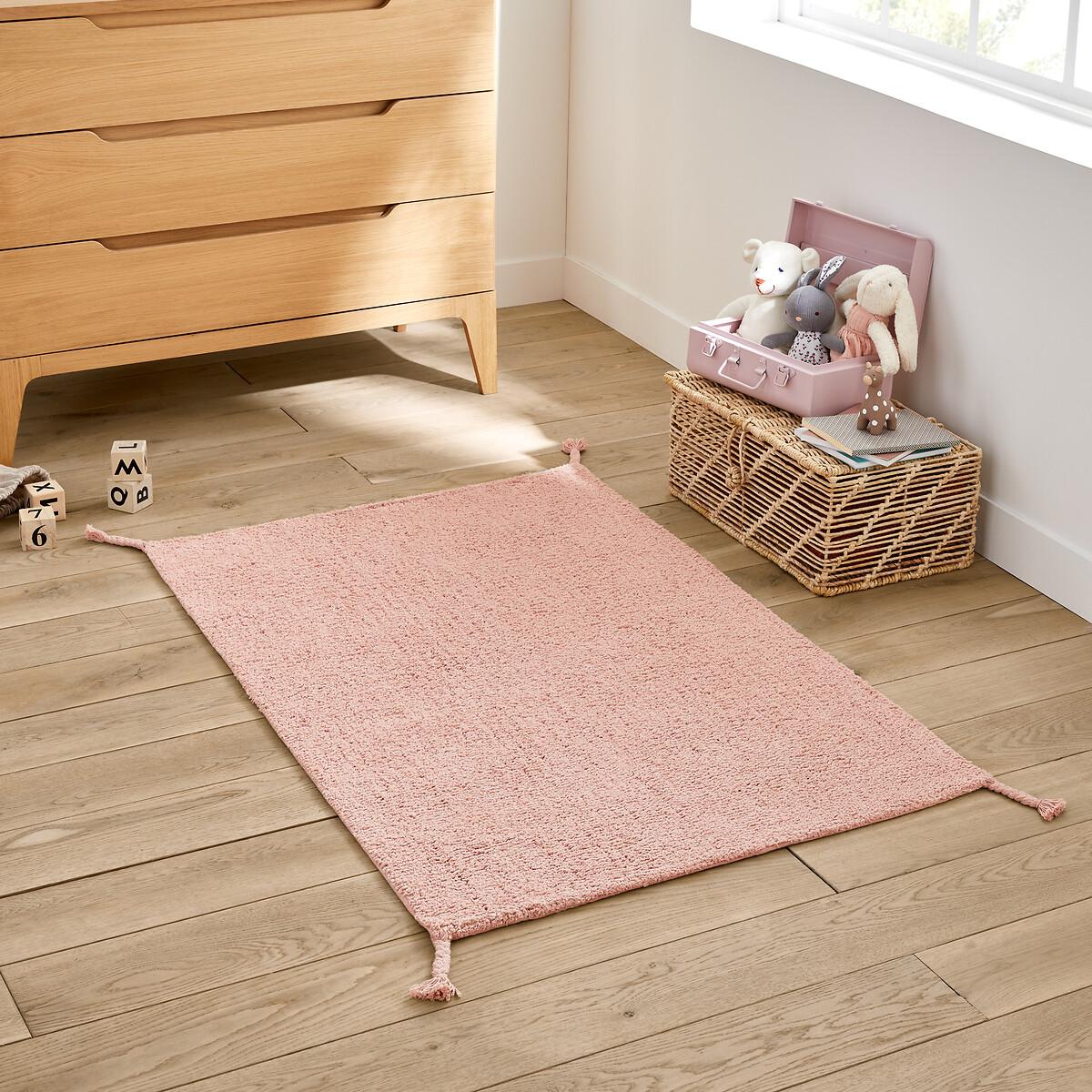 With tassels on the 4 corners, the Hiro children's rug will find its place in a child's room and will create a warm atmosphere.. Made from cotton and handmade, it insulates from the cold and provides comfort and softness. Product Details • 100% cotton, 1700 g/m2 • Artisanal craftsmanship • Tassel on each corner • Machine washable • Non-slip backing. Quality Info • Cotton is soft to the touch and fluffy. This cotton rug is a good heat and sound insulator. Sizes • Width 80 x Length 130cm • Thickness: 1.7cmDelivery:. Available for home delivery.