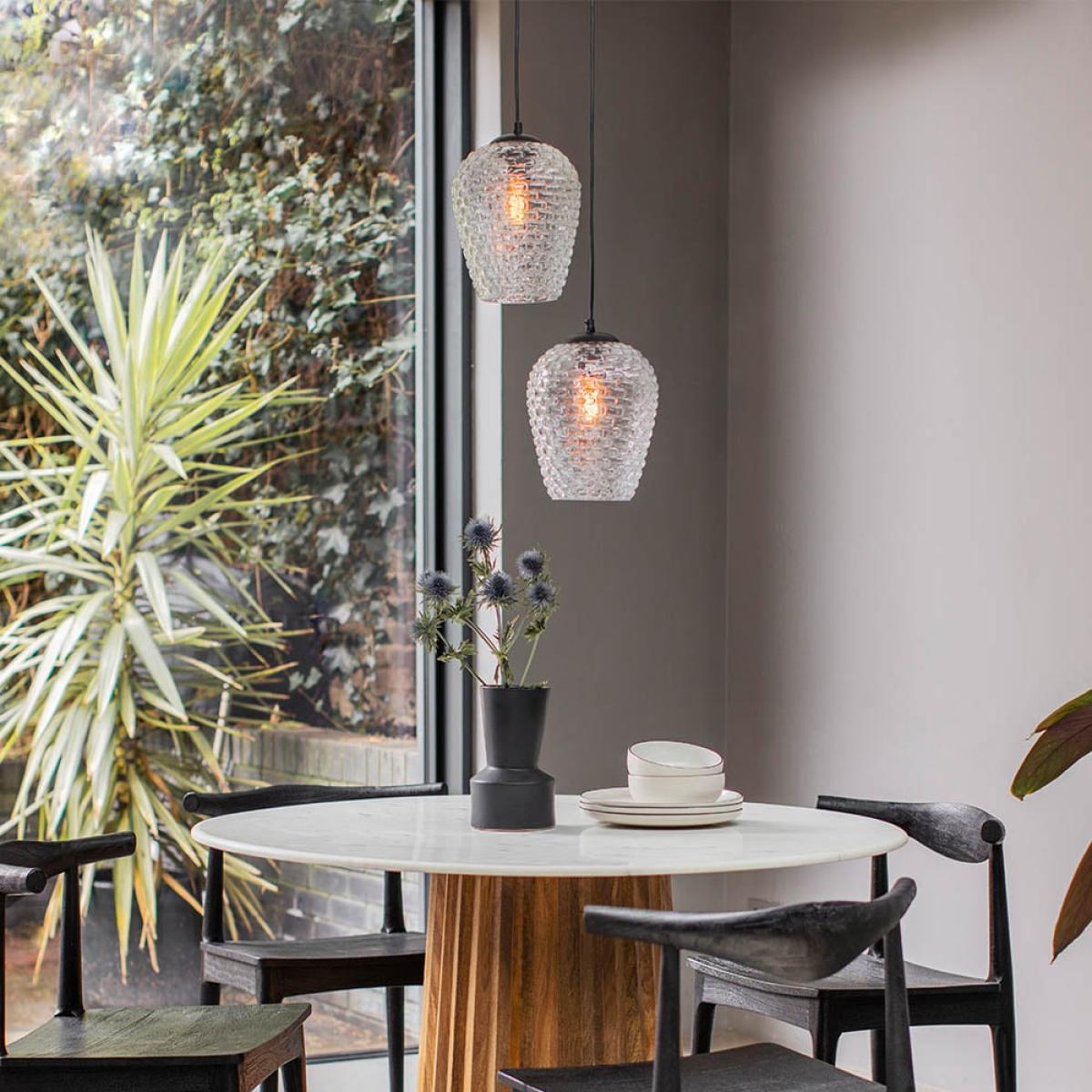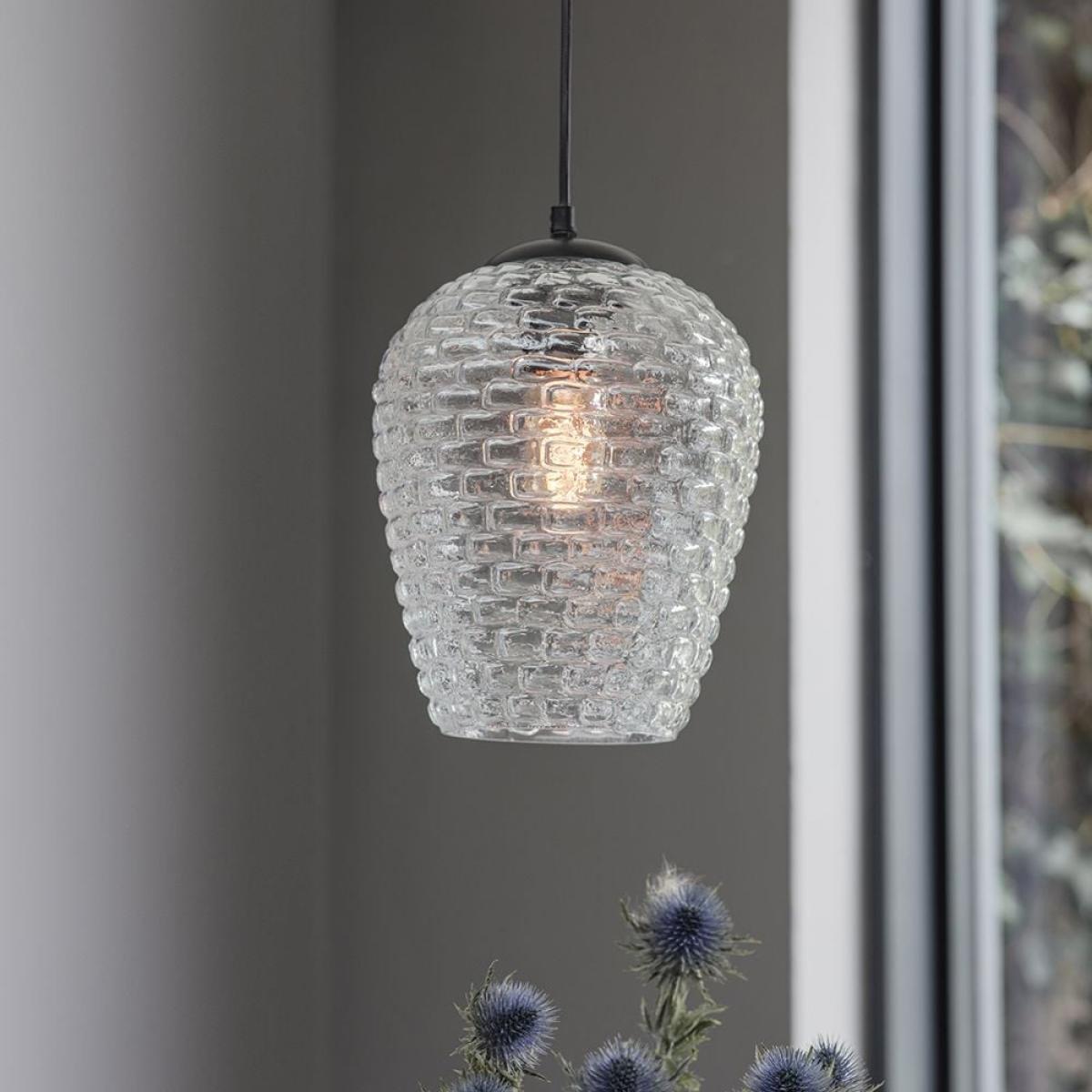 Sturdy and stunning, our Hive Glass Pendant Light brings textural appeal to any space. Perfect for kitchens, dining areas and open-plan spaces, it looks beautiful hung in a cluster of two above the dining table or in a row of three above an island or breakfast bar. Understated and elegant, this Hive Glass Pendant Light is ideal for enhancing a minimalist décor. Its glass design allows the light to shine through in a diffused look while the textural glass shade brings an extra three-dimensional element to your surroundings. The Hive Glass Pendant Light can also be hung in a tired effect on the landing or in the hallway, or hang at different lengths to create further interest, spreading the accent and task lighting around your space for dining, cooking, relaxing or entertaining. Matching Hive Table Lamp also available.
