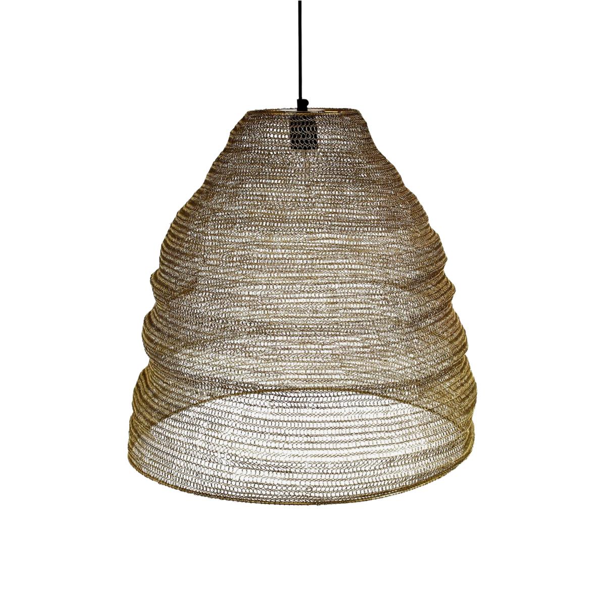 I love this wire pendant for its contemporary yet slightly industrial look, which makes it a versatile choice for both modern and pared-back interiors. Its gold finish adds a touch of warmth and sophistication, making it perfect for living spaces, kitchens, or dining areas where you want a statement piece without overpowering the room. To style it effectively, consider pairing it with exposed filament bulbs or vintage-style LEDs for a cosy, inviting glow. It works particularly well in schemes with natural materials like wood or rattan, as seen in this design, and can be layered with other lighting to create a well-balanced ambiance. For a more eclectic look, it pairs nicely with other metallic accents or textured textiles.