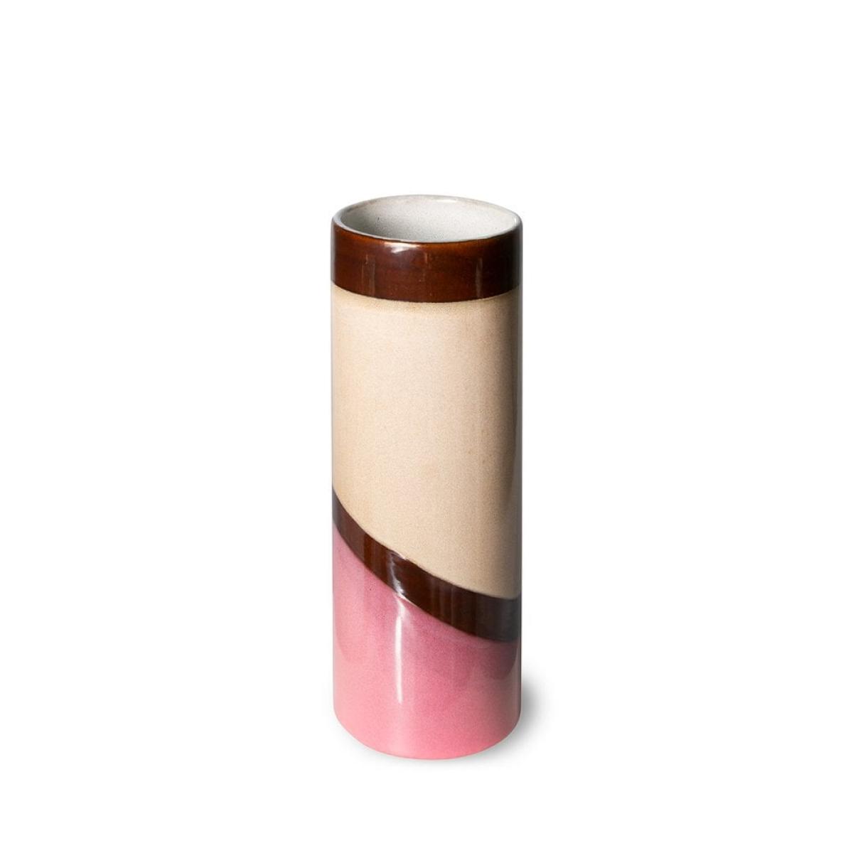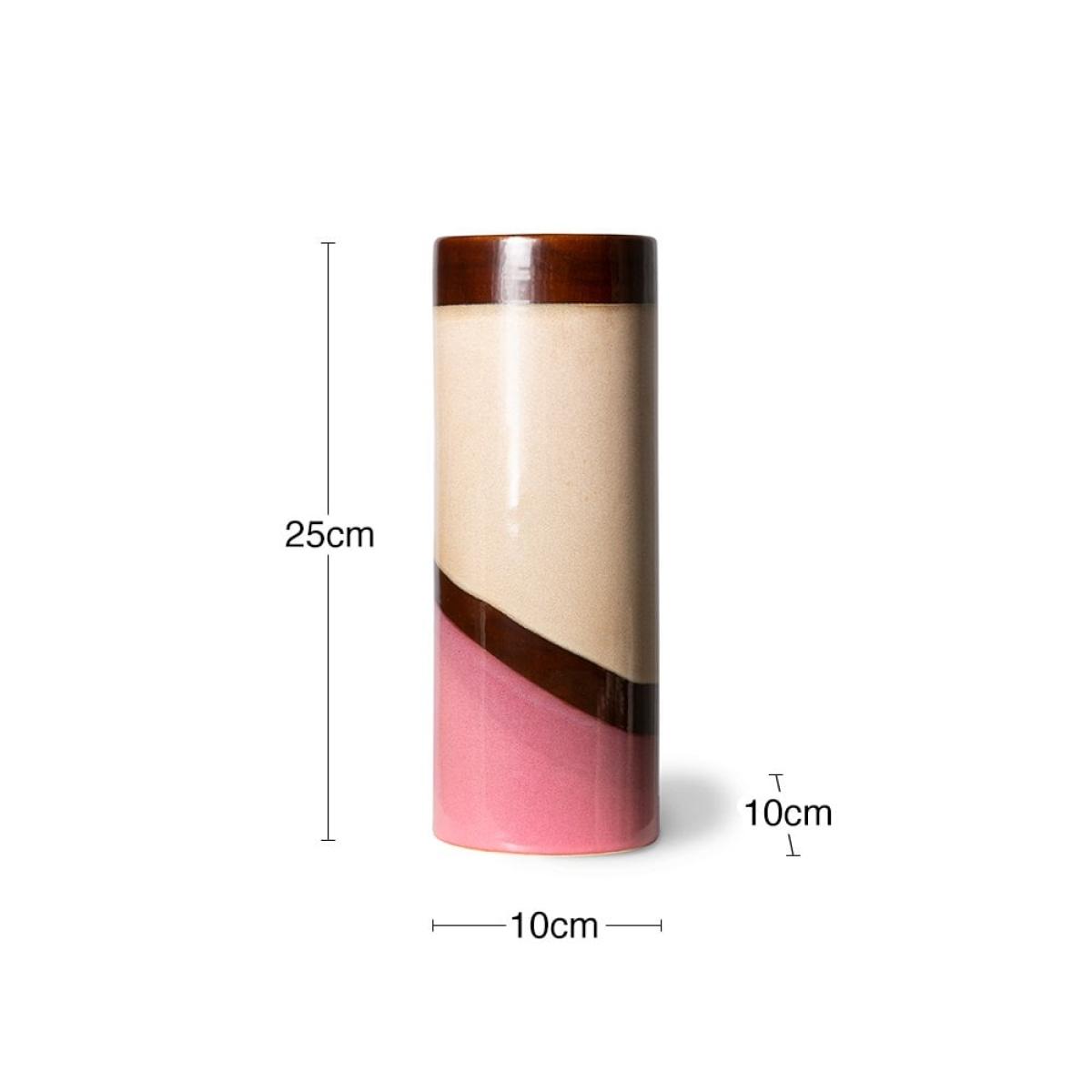 Reminiscent of a sunset across the beach, or desert dunes as highlighted in its title, the HKliving ceramic vase in a classic cylindrical shape is ideal for large blooms. In shades of dark red, pink and cream in swooping smooth strokes, this vase offers a subtle colour and design to your space.