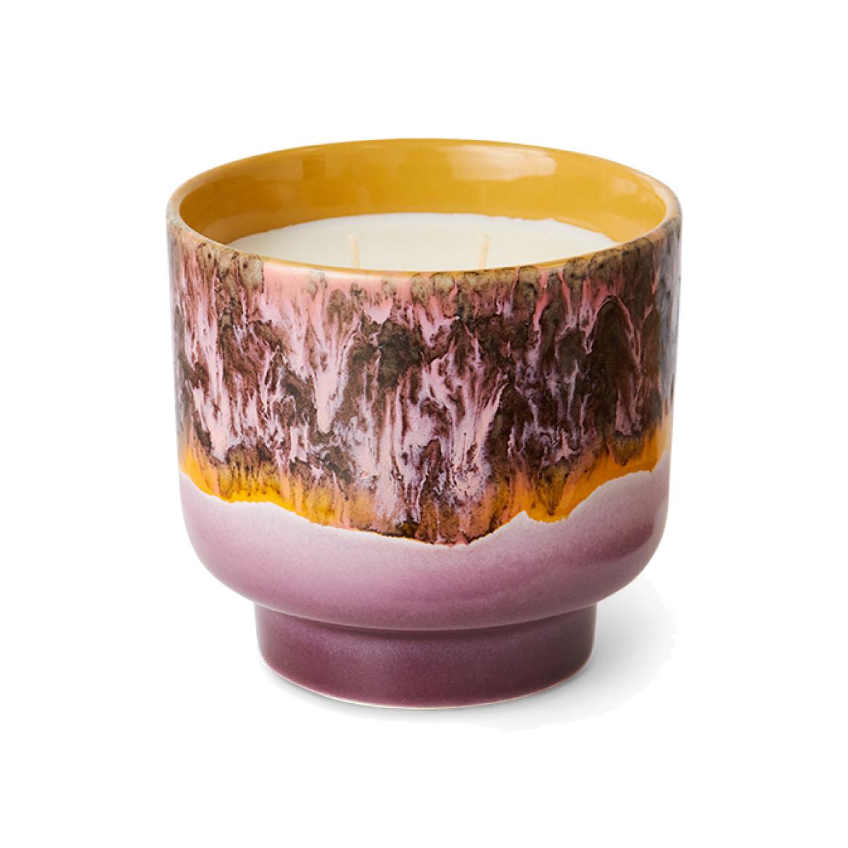 This 70’s scented candle is a fantastic piece that adds warmth and a touch of retro character to various interiors. I love how its colours and textured finish lend themselves well to boho, eclectic, and modern vintage schemes. It works particularly well styled on a wooden tray, alongside woven accessories or layered with other ceramic pieces to create a cosy, inviting vignette. For practical tips, try placing it on a bedside table or sideboard to introduce a subtle scent that complements natural textures and muted colour palettes. Its bold, glazed appearance also means it can stand alone as a featured decor item without overpowering the space.