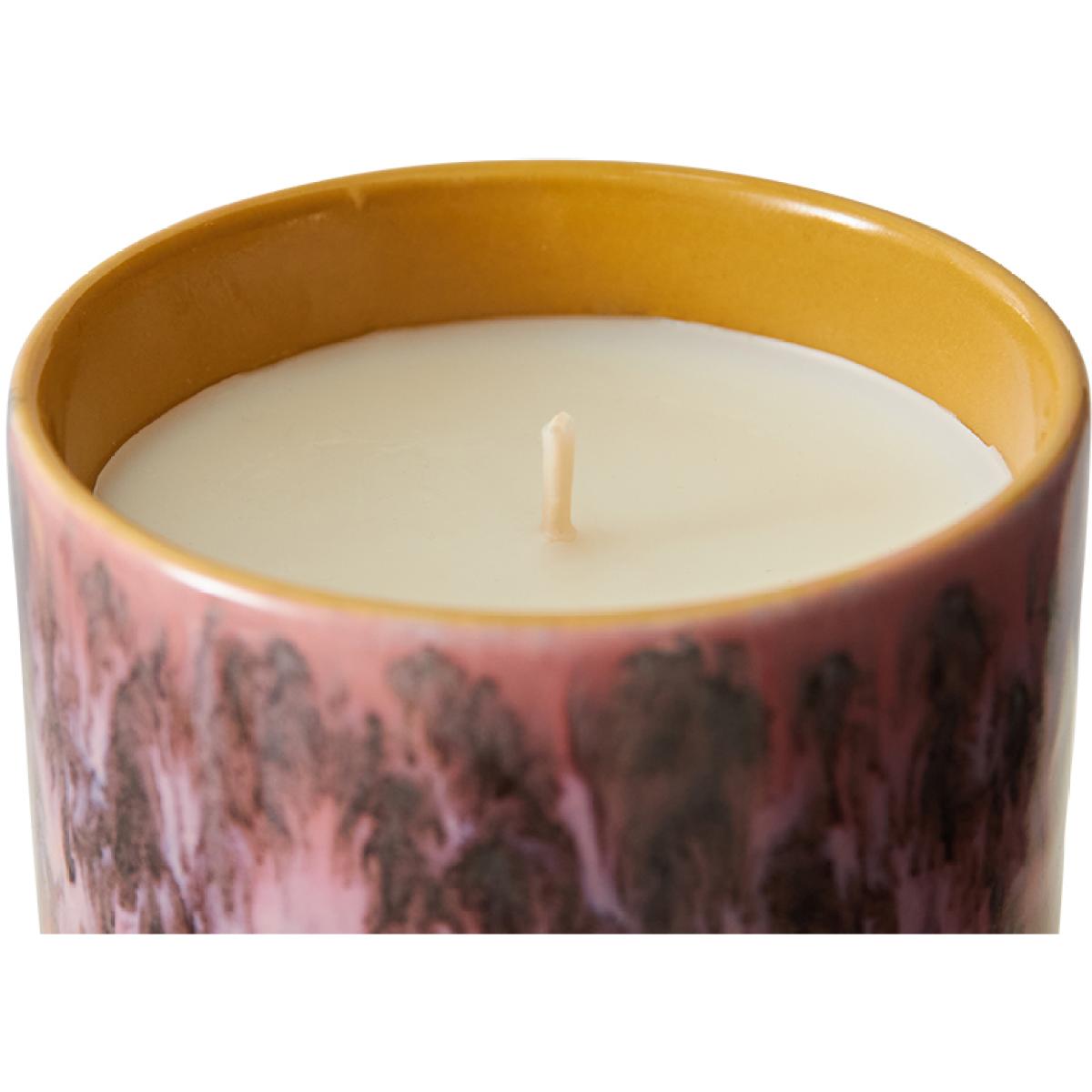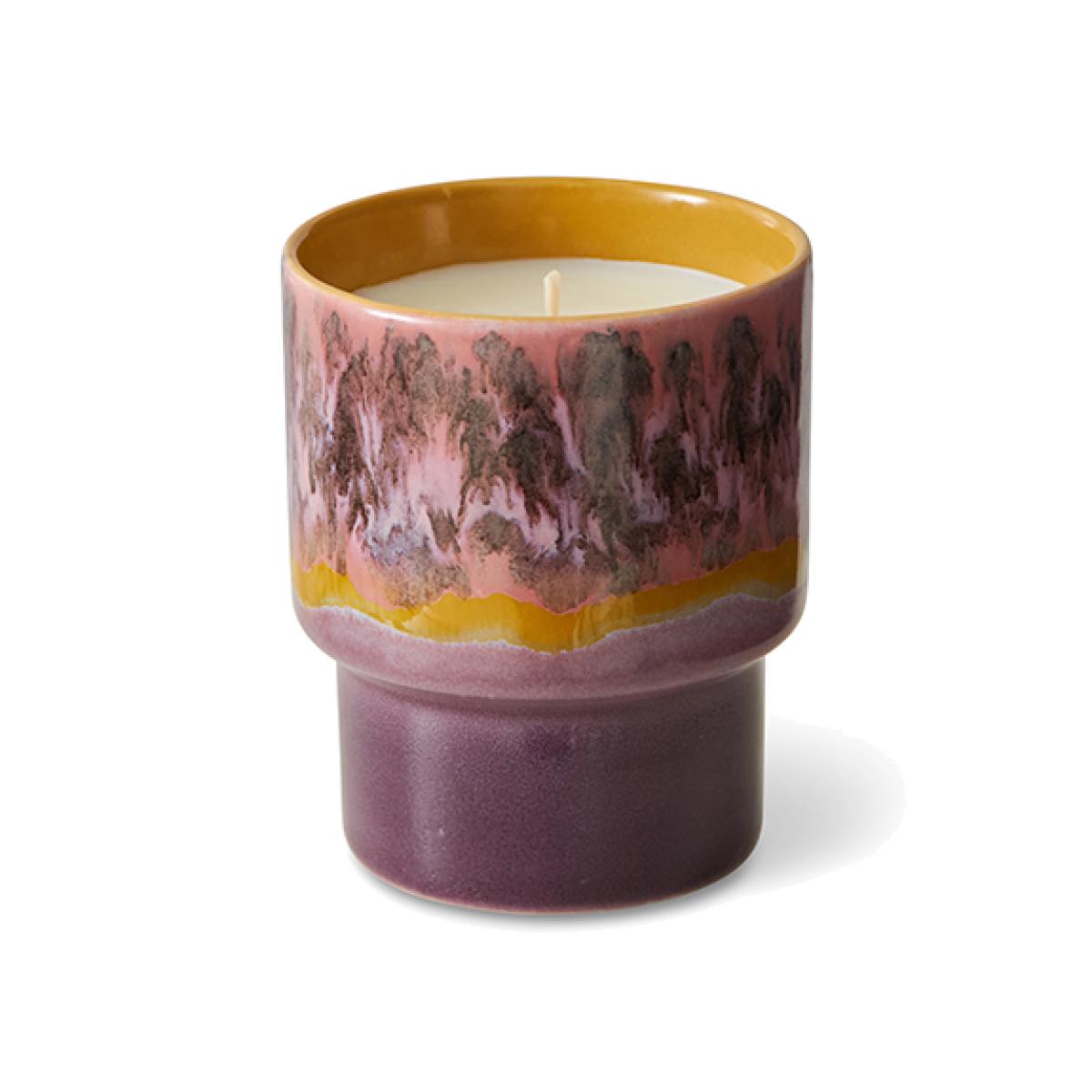 I love this small candle for its retro-inspired design and subtle colour palette, which makes it versatile across various interiors. It works particularly well in boho, eclectic, and modern spaces where a touch of warmth and colour is needed. Placing it on a coffee table, open shelf, or bedside table allows it to serve as both a decorative accent and a source of cosy ambient light. Practical styling tips include grouping it with other candles or textured ceramics, and pairing it with softer textiles like linen or velvet to enhance its 70s vibe. Its size also makes it ideal for slipping into tighter spaces or layered displays, adding an inviting focal point without overpowering the overall decor.