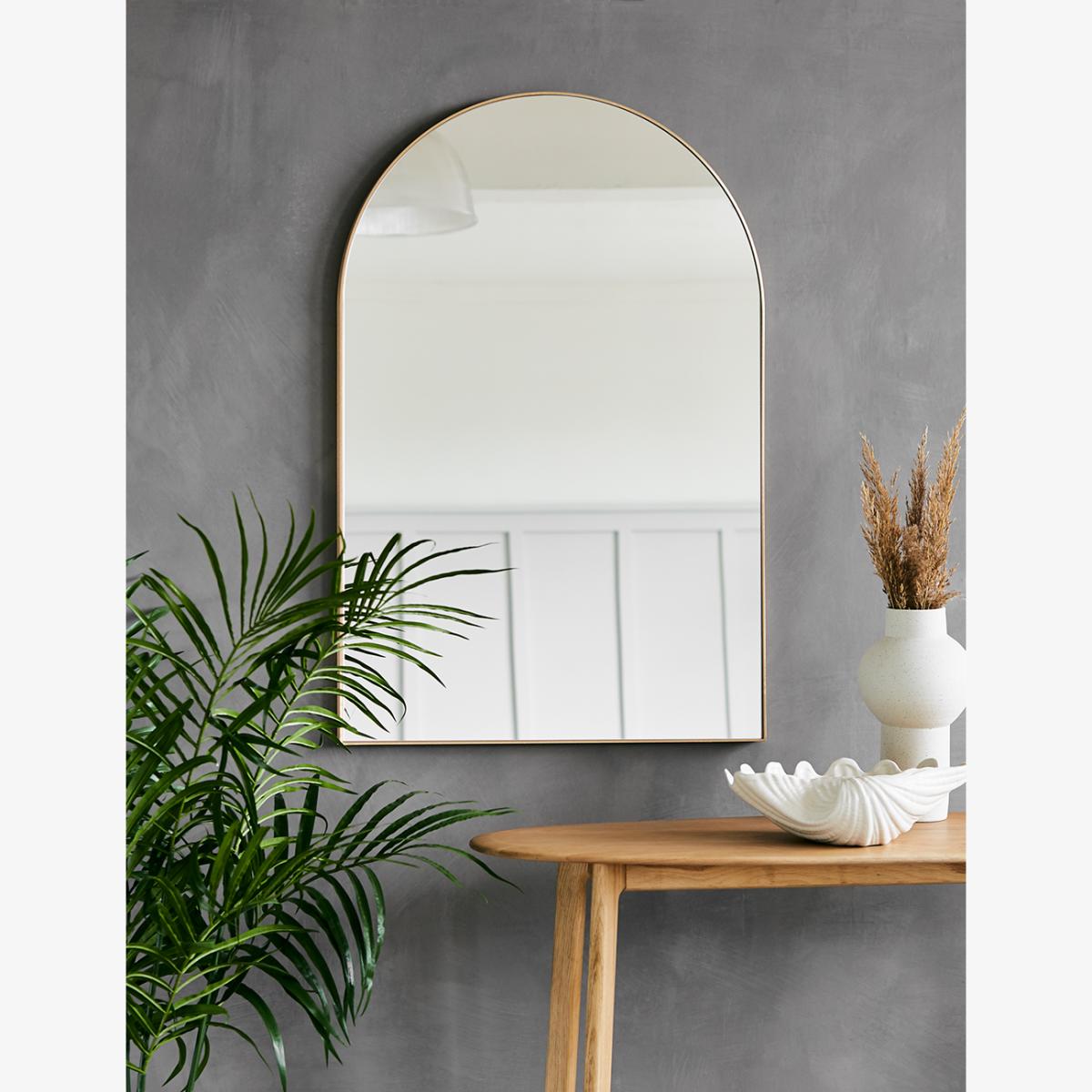 I love this arch brass wall mirror for its minimalist yet refined look, which adds a touch of warmth and elegance to many interior styles. It works particularly well in contemporary, boho, or Scandinavian schemes, where the brass detail offers a subtle hint of luxury. Practical styling tips include placing it above a console table or dresser to create an inviting entryway or bedroom focal point. Its warm metal finish pairs nicely with natural materials like wood and linen, and it can also be used to reflect and maximise light in smaller spaces. Remember to keep surrounding decor simple to let the mirror’s shape and brass detail stand out.