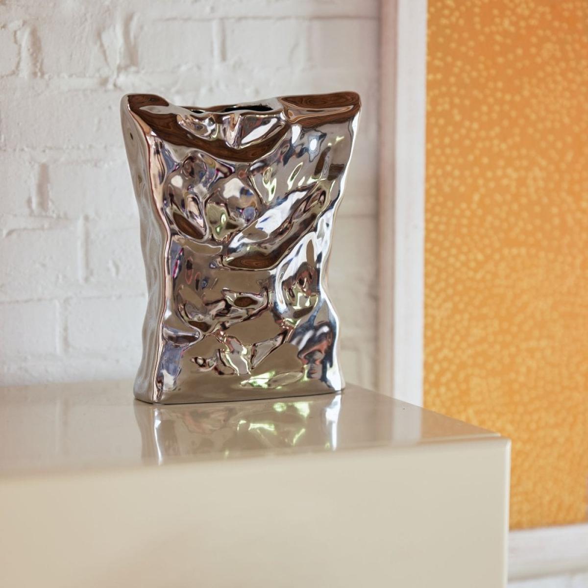 I love this bag of crisps vase for its playful, contemporary vibe-it’s a real conversation piece. Its shiny, metallic finish makes it perfect for modern and eclectic interiors, especially when paired with neutral or monochrome schemes to add a pop of visual interest. It works well as a statement piece on a mantle, side table, or shelf, where it can catch the light and showcase a simple bouquet or even operate as a standalone decorative object. For styling tips, consider contrasting its glossy surface with matte textures or pairing it with other metallic accents for a cohesive look. It’s versatile enough to work in both minimal and more maximalist settings, adding a touch of fun and sophistication at the same time.