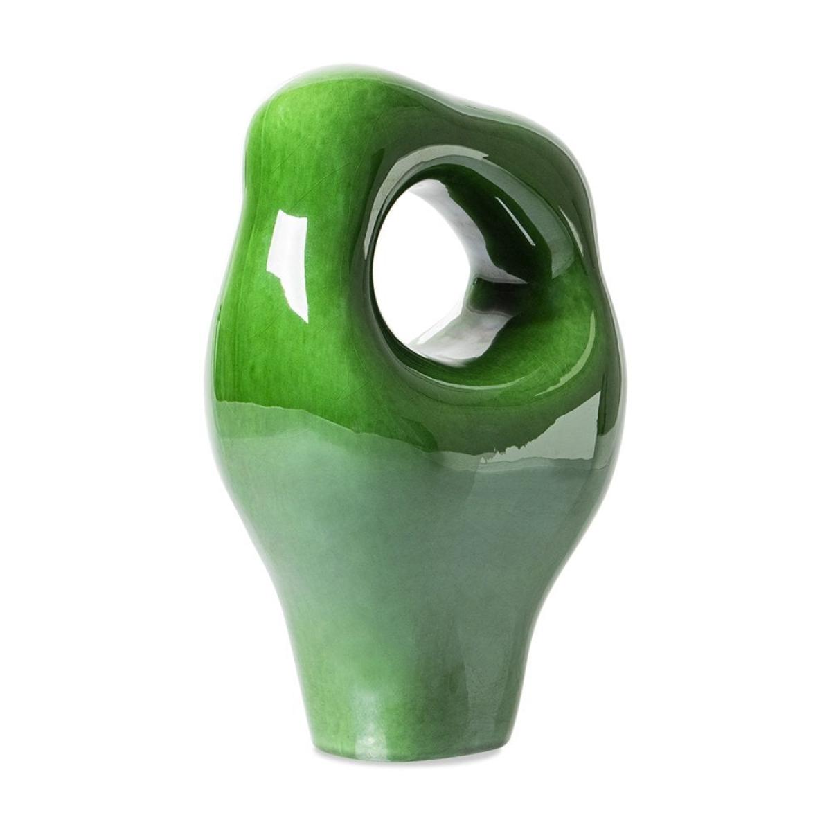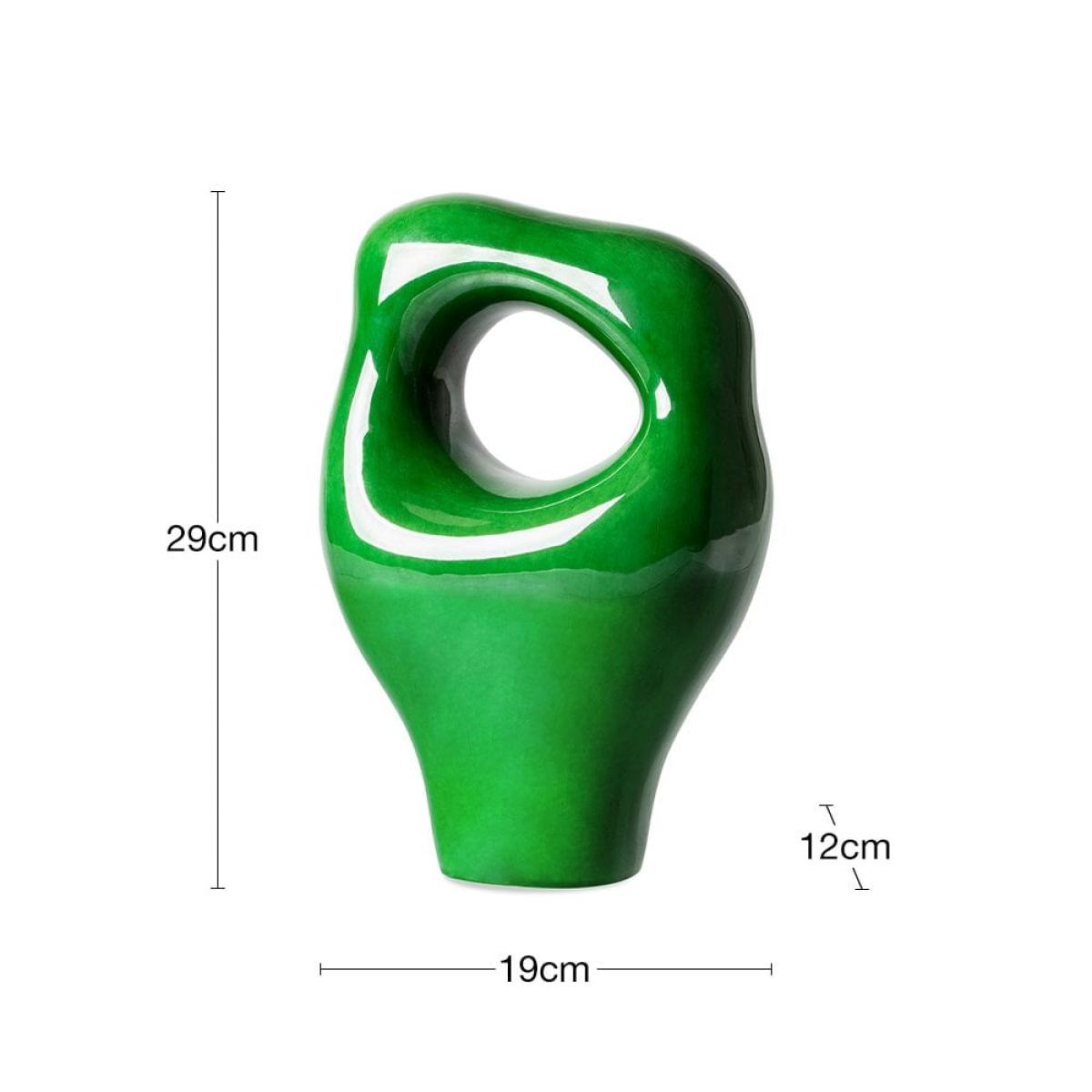 Organic form mixed with rich green, it's a match made in heaven. This sculpture has an alluring freeform shape with glossy finish. Make the focal point of hallways and living spaces after the post-modernist style.