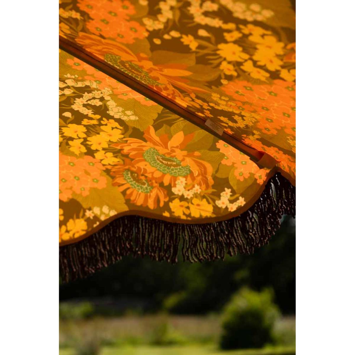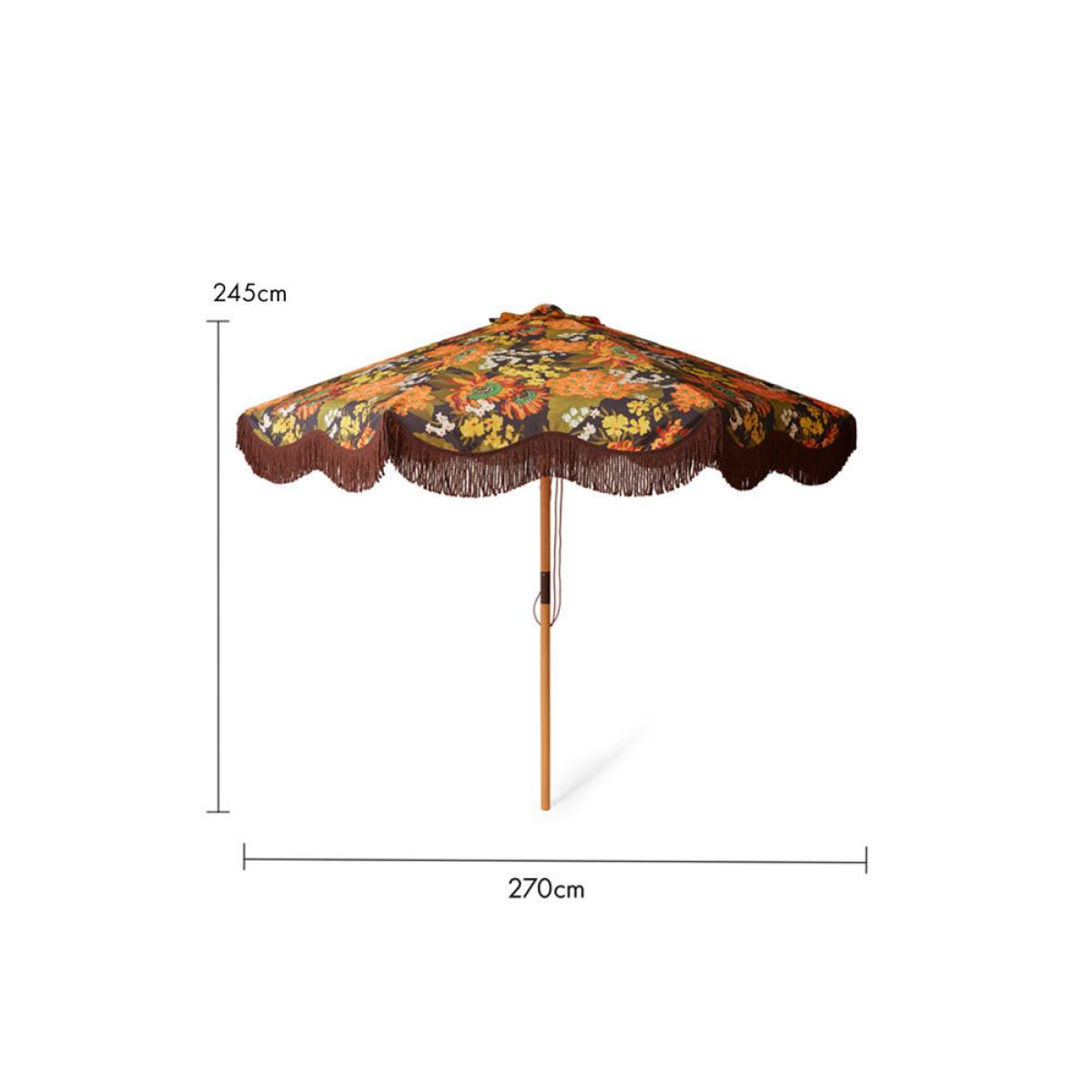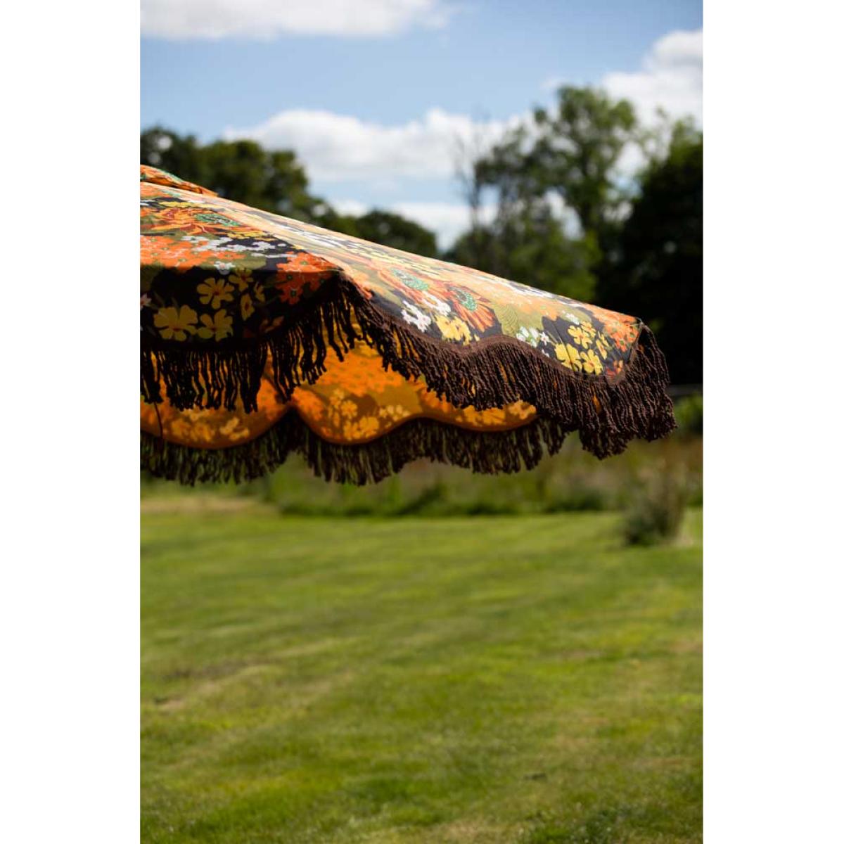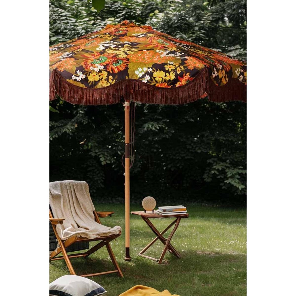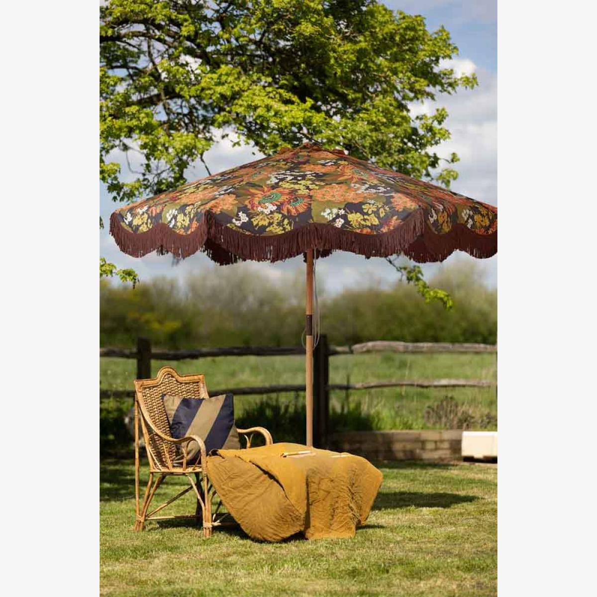 Hello, sunshine! As much as we adore you, it’s a quirk of our loveable British natures that as soon as we catch a glimpse of your energising rays, we’re either roasting ourselves lobster red or running for cover and praying for rain. This gorgeous parasol may go some way to preventing either – it sports a generous canopy that provides a cooling puddle of shade, whether you’re sat at a garden table or on a picnic blanket on the lawn (please note the base is not included). There’s a definite ‘70s vibe to this floral brolly that makes it the perfect accessory for a laidback garden party – the deep reds, orange and brown hues make a striking contrast to the yellow and green pops of colour that are scattered throughout the design, and we particularly love the brown fringing – it just screams folk festival! The beechwood pole is adjustable, so you can angle this to where you need the most shade, and the whole thing packs down neatly to be folded away in a matching carry bag. It’s a practical yet beautiful forever piece that’s definitely earned a place in Team RSG’s camper van this summer. Just the ticket if you like to enjoy the sun safely. - HKliving Dark Florals Flourish Parasol - Material: Polyester, beechwood, brushed steel - Measures: H245cm x Dia. 270cm - Ensure fully dry before storing - Some fading may occur over time