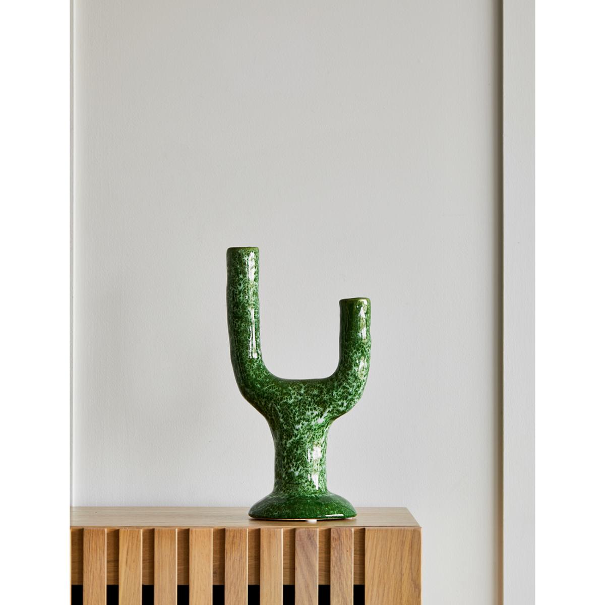 Add a pop of colour to your home with this emerald green ceramic candle holder. Pair with our twisted candles for a stylish display.