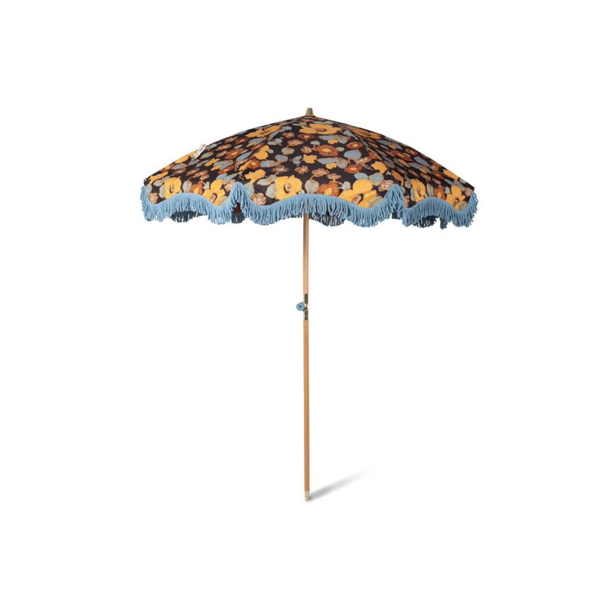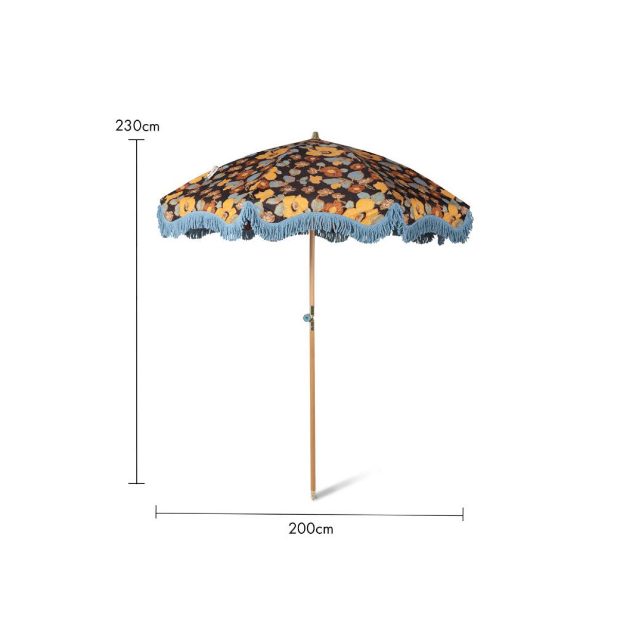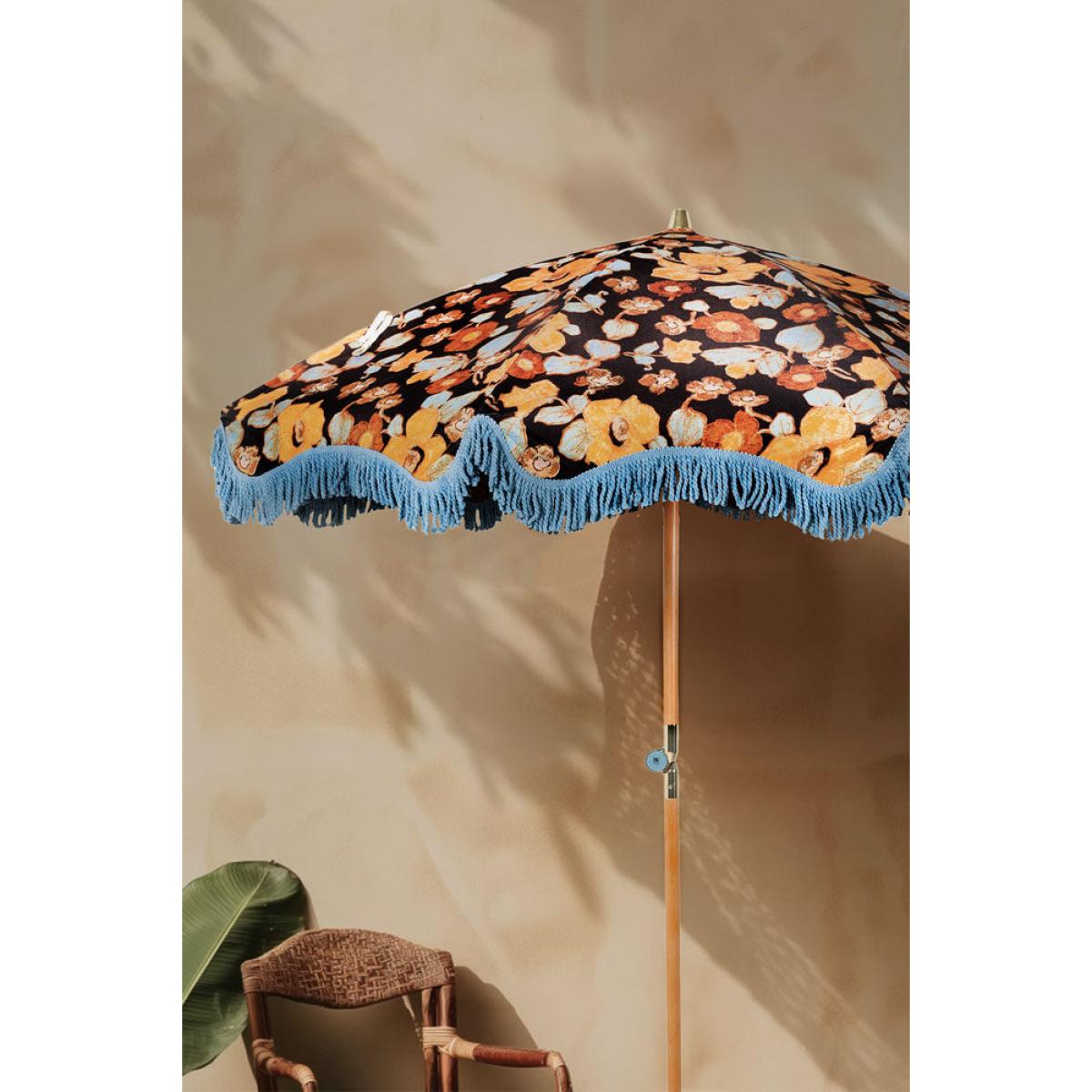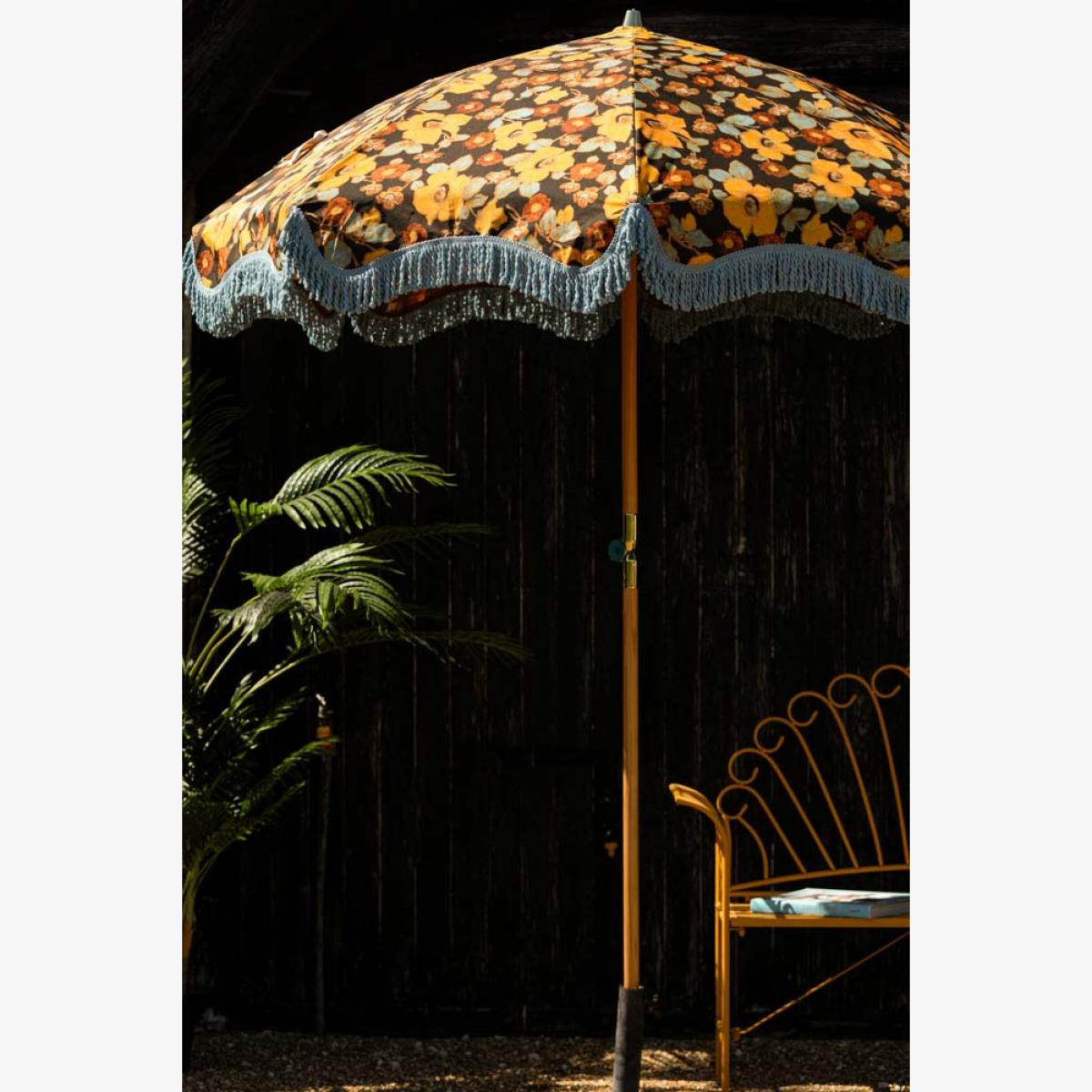Create an outdoor haven of peace and tranquillity with this fabulous parasol – or at the very least, fashion a shady spot to which you can retreat when the mercury starts to rise. This beautiful garden brolly sports a combination of ‘70s colours that are brought bang up to date with the addition of ocean blue fringing, which adds a soft and tactile appeal to this garden essential. A sturdy, adjustable beechwood pole keeps the whole thing aloft, while a hardwearing polyester canopy supported by stainless steel ribs provides a glorious pool of cool under which you can enjoy your picnic or lunchtime spread. A quality piece with timeless appeal, this is an investment buy that will see you through many a season – when not in use, it folds down and slips neatly into its very own carry bag of the same design. Simply store away over winter ready for next year – an annual treat upon which to feast your eyes. - HKliving Floral Flourish Parasol with Blue Fringing - Material: Polyester, beechwood, brushed steel - Measures: H230cm x Dia. 200cm- Please note a stand is not included- Dry completely before storing- Colour may fade over time
