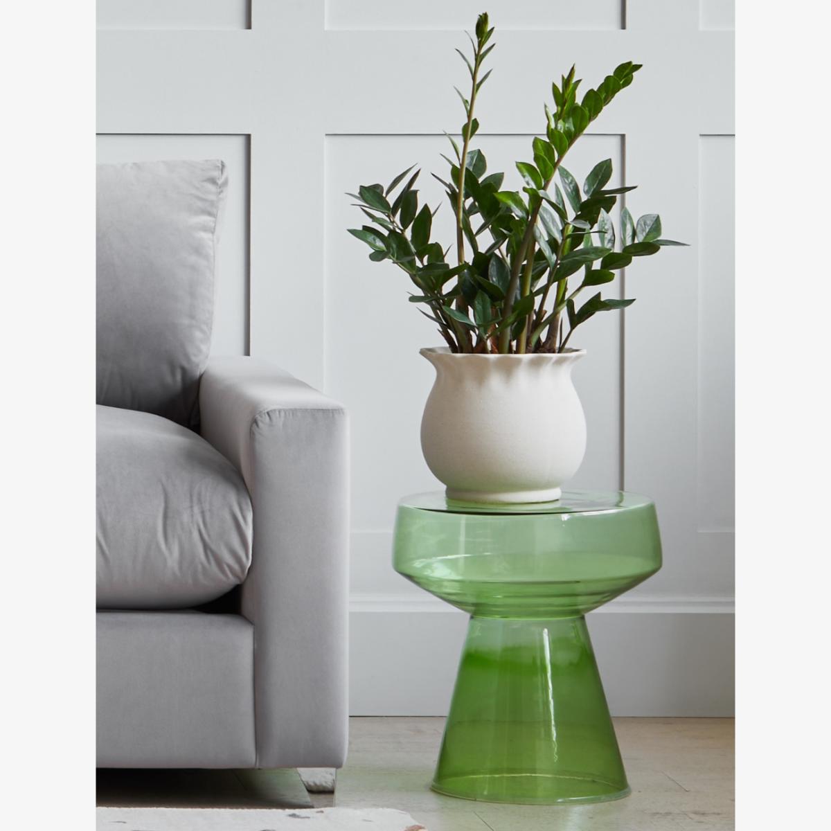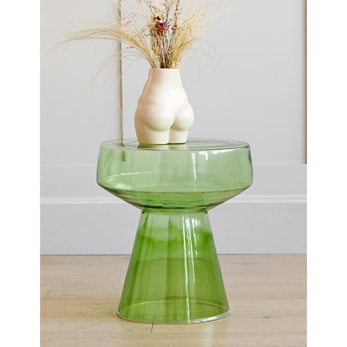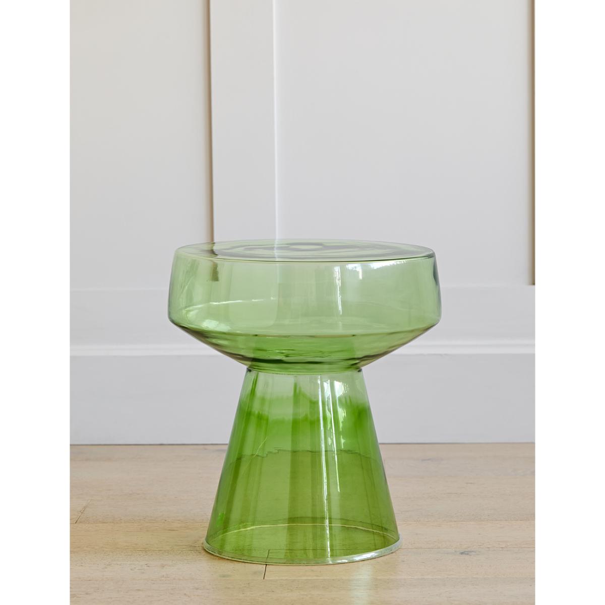 This fun green glass side table is perfect for adding a joyful ambiance to your home. We love it used beside your favourite armchair, or even as a bedside table.