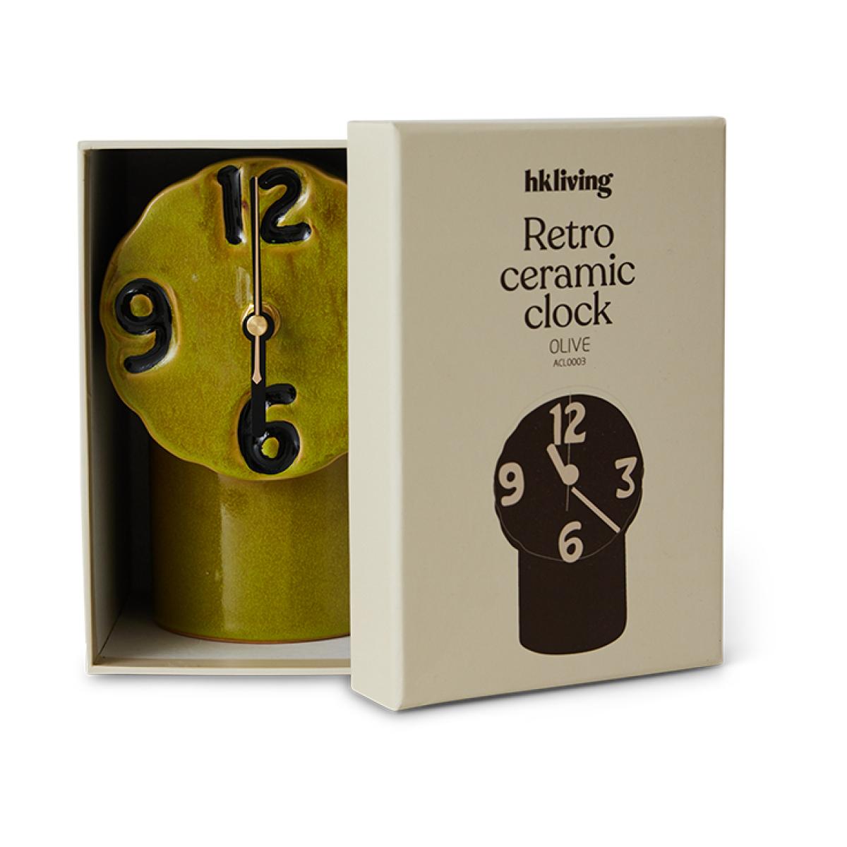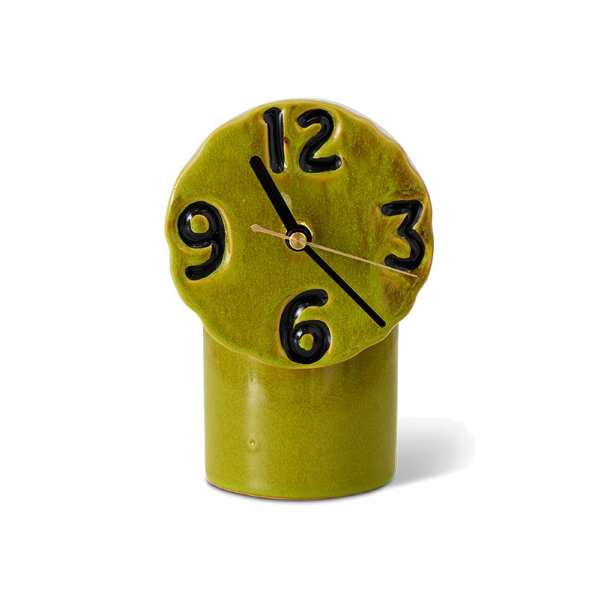 I love this retro clock because its olive green hue adds a subtle pop of colour, making it a versatile piece for various interiors. It works particularly well in eclectic, boho, or mid-century styled spaces, where statement accessories are key. To style it effectively, consider placing it on open shelving, a sideboard, or a desk where it can serve as both a functional object and a visual accent. Pair it with other earthy tones or textured materials to enhance its retro charm. Practical tip: keep the surrounding décor simple to allow the clock's bold, organic shape and colour to stand out without overwhelming the space.