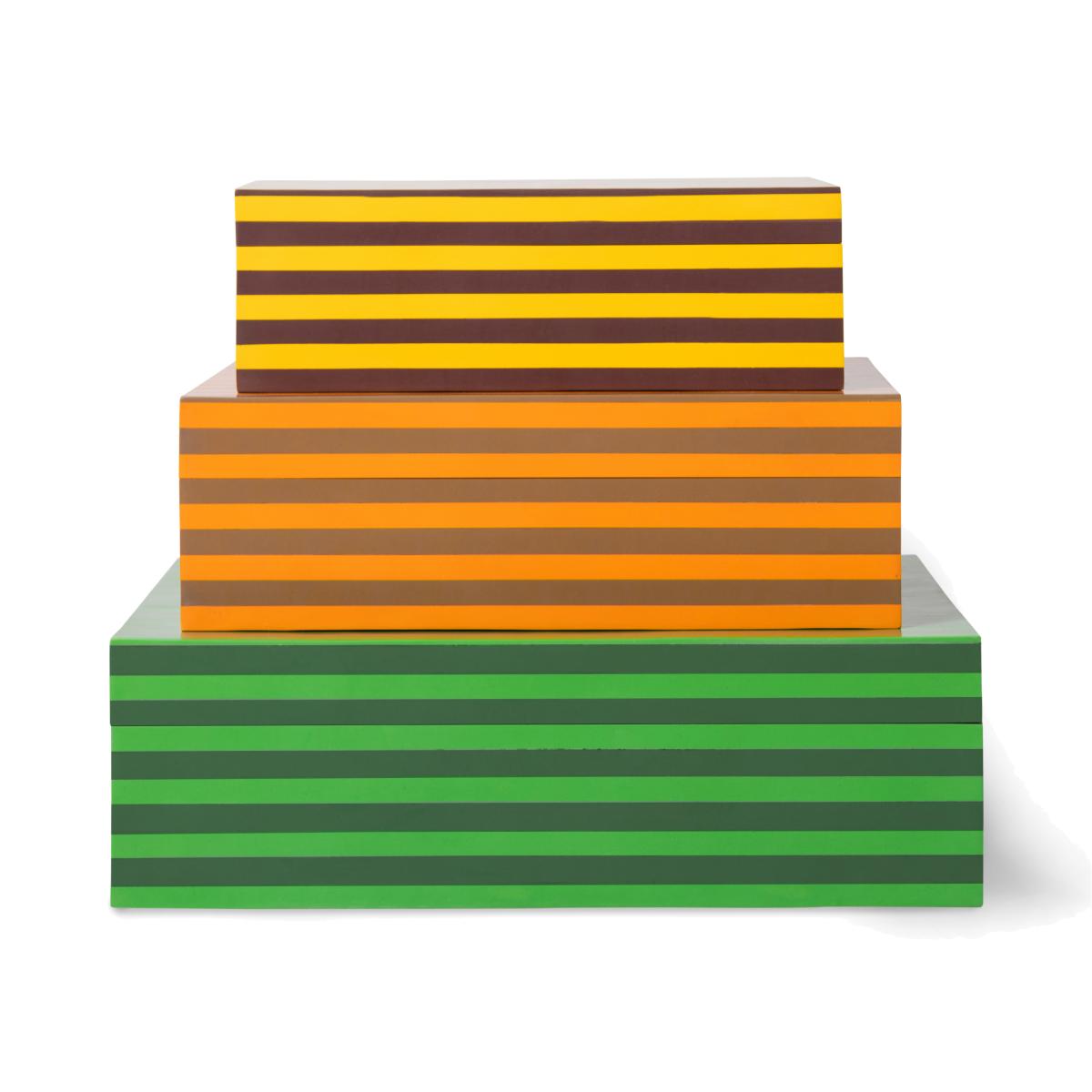 I love this set of boxes because of their bold, colourful stripes which add a playful touch to any space. They’re versatile enough to work well in a variety of interiors, from modern and minimalist schemes to more eclectic or vintage-styled rooms. The different sizes make them practical for organising everything from stationery and accessories to kitchen essentials or laundry bits. For styling tips, I’d suggest using the smallest one for organising desk drawers or bathrooms, while the larger ones are great for under-stair storage or rustic shelves. They also look great stacked or paired with neutral baskets to inject a pop of colour without overpowering the room.