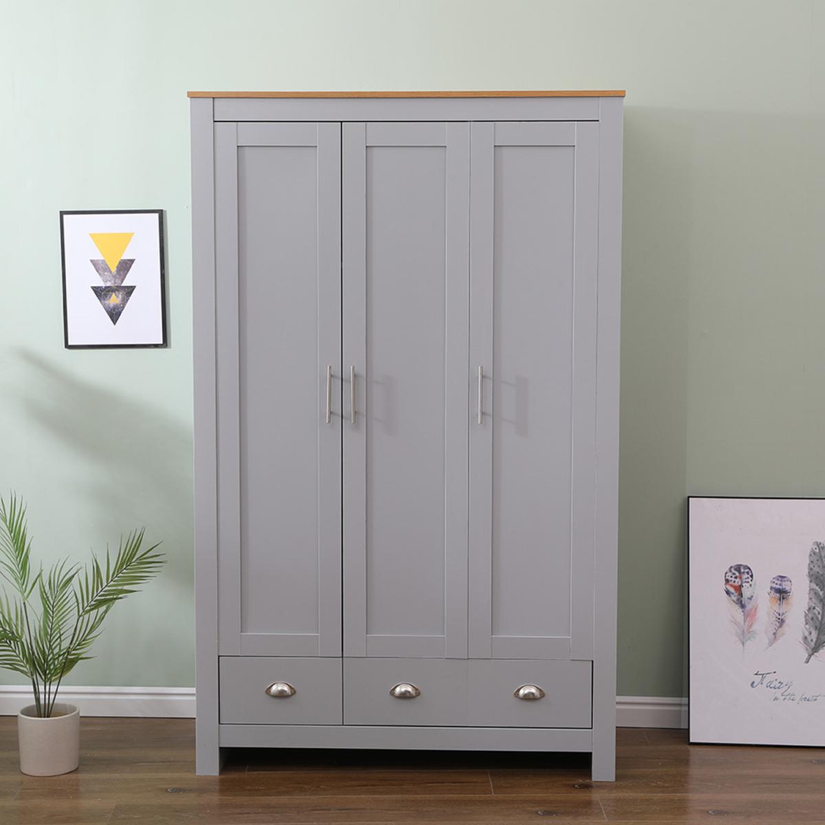 HMD 3 Door 3 Drawer Wardrobe - Grey + Oak
