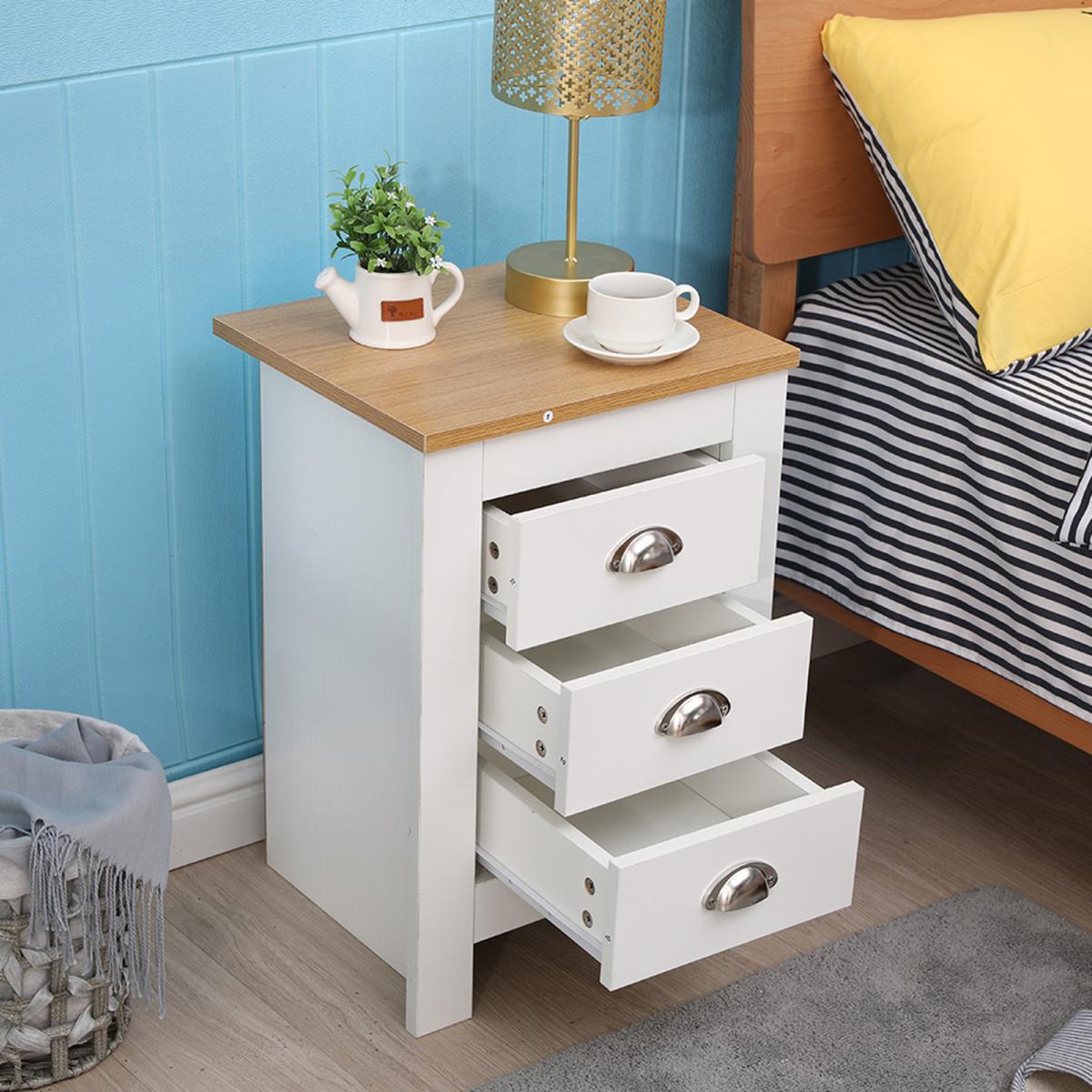 HMD 3 Drawers Bedside Table,Storage Nightstand - White