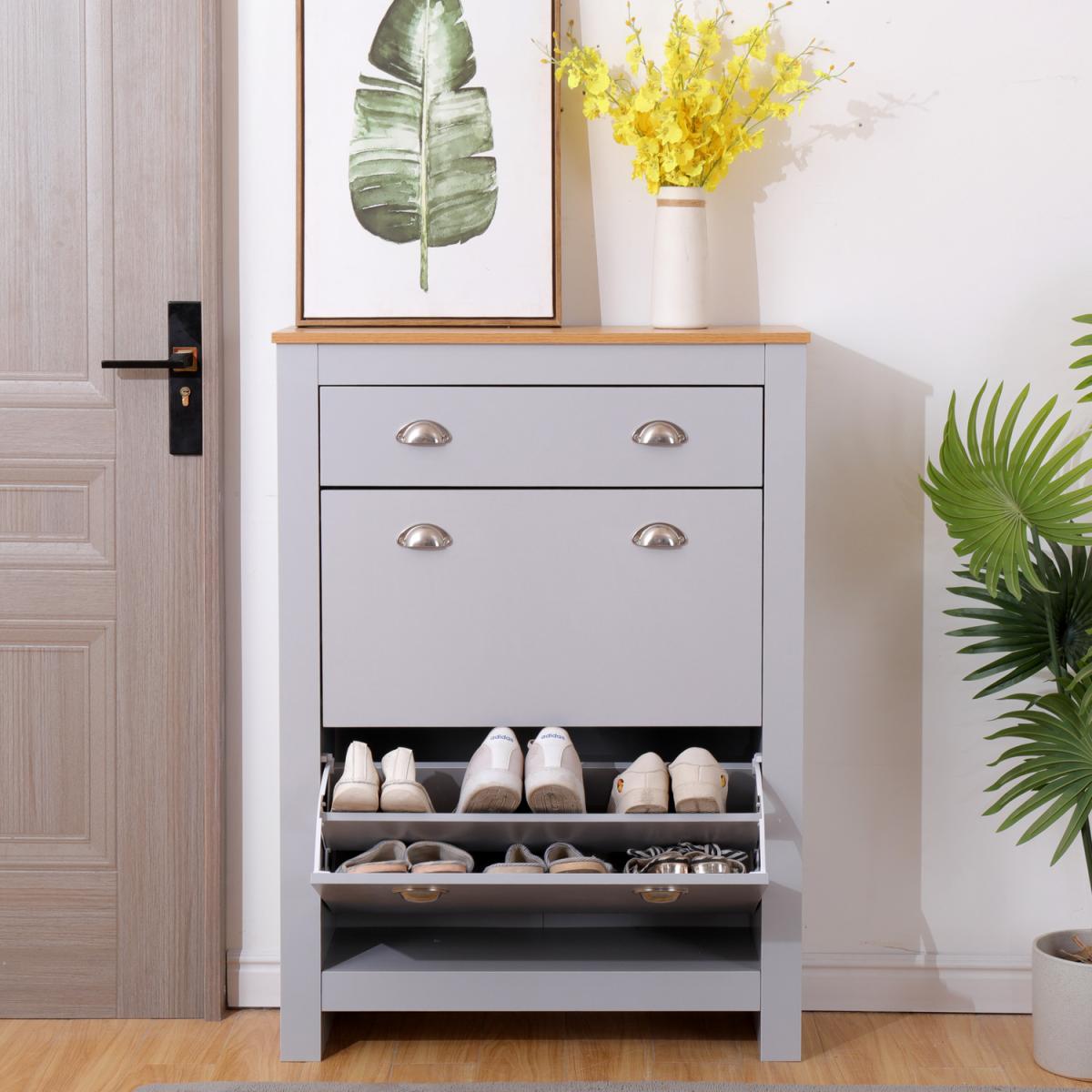 HMD Shoes Storage Cabinet Footwear Stand 3 Drawers - Grey+Oak