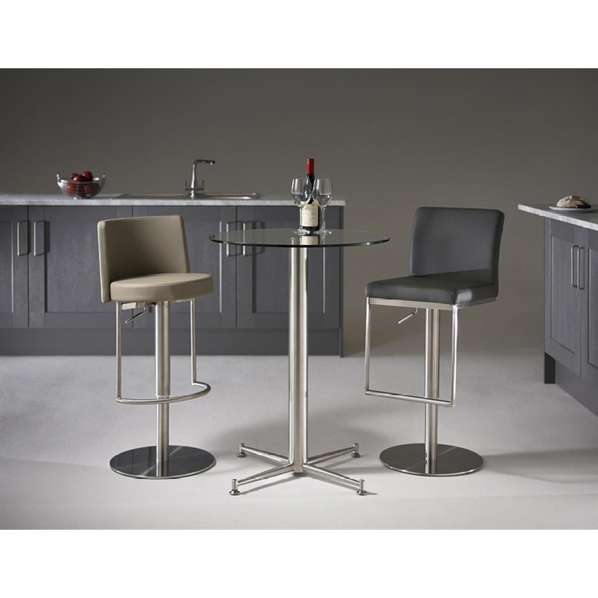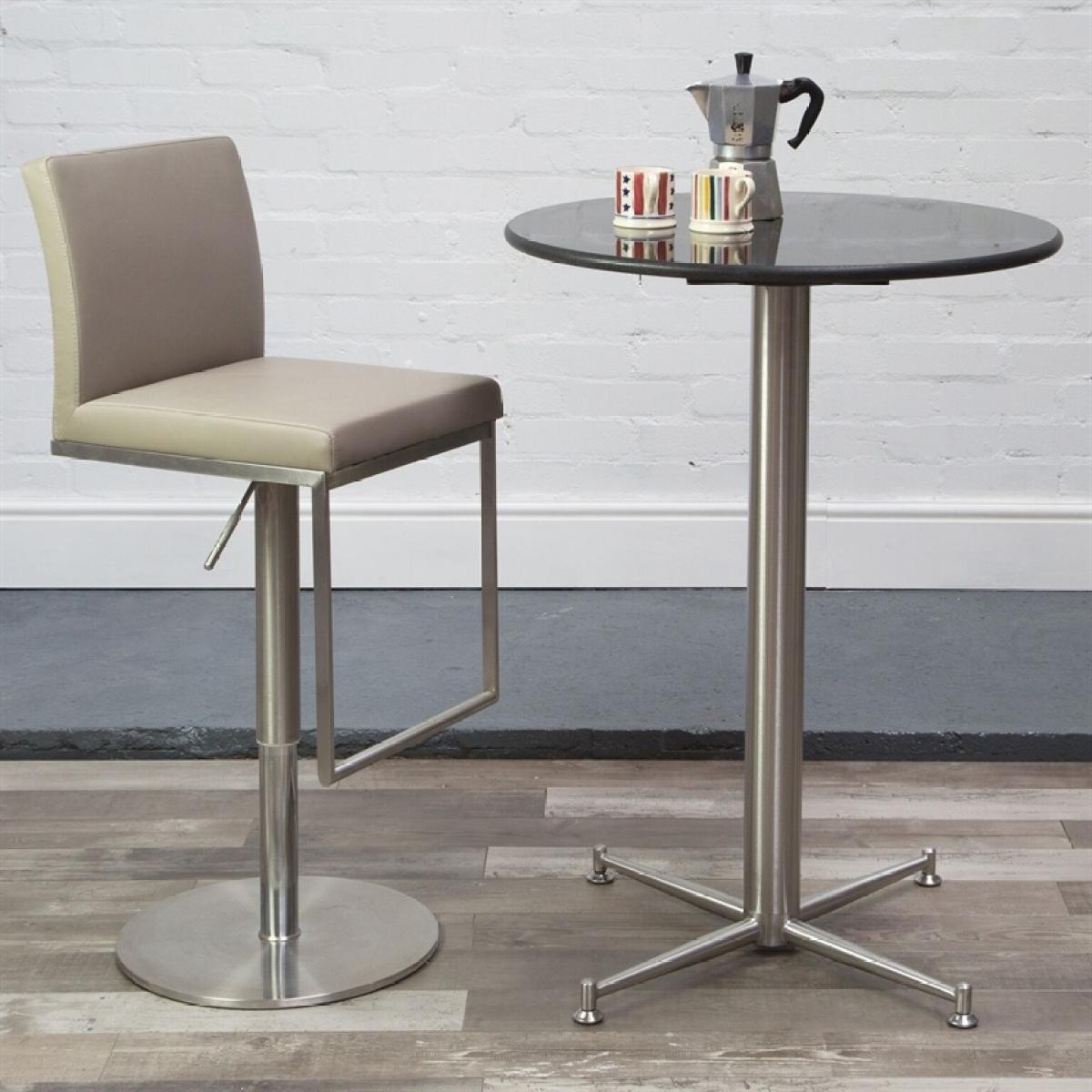 The bar table is available in a choice of marble, granite, terrazzo, glass, or manufactured quartz tops. Choose a polished or brushed stainless steel base.   Available Sizes 65cm top diameter, 93.5cm high (Stone only) 70cm top diameter, 93.5cm high 75cm top diameter, 93.5cm high (Stone only) 80cm top diameter, 93.5cm high 60 x 60cm square top, 93.5cm high 70 x 70cm square top, 93.5cm high All screens vary in colour reproduction and whilst every effort has been made to display the colour as accurately as possible it is for guidance only.