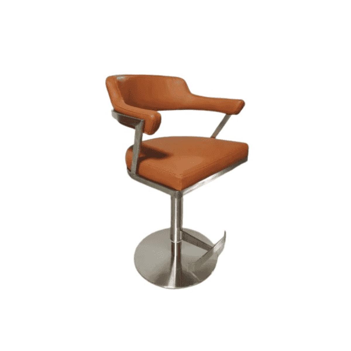 I’m a fan of the Firenza stool for its brushed stainless steel base paired with a softly upholstered seat - it feels right at home in a modern kitchen island or a compact home bar. The swivel action and adjustable height make it a practical choice for both casual breakfasts and evening entertaining. Styling tip: tuck two or three under a stone or timber countertop to maintain a streamlined look, then soften the metal with a slim wool throw over the backrest. A trio of pendant lights hung low above will tie the scheme together without competing for attention.