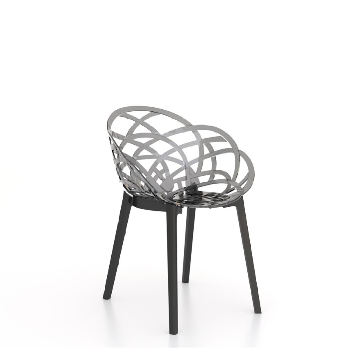 HND Flora Anthracite Dining Chair is a stackable chair ideal for both indoor and outdoor use. Crafted with a sturdy polypropylene base and a polycarbonate seat, both UV-stabilized for long-lasting durability. This chair effortlessly combines resilience with contemporary design, making it a perfect fit for any setting, indoors or out. Avaialable in claer or smoked seat. Dimensions Height 83cm Depth 59cm Seat height from floor 43cm Weight 5kg All screens vary in colour reproduction and whilst every effort has been made to display the colour as accurately as possible it is for guidance only