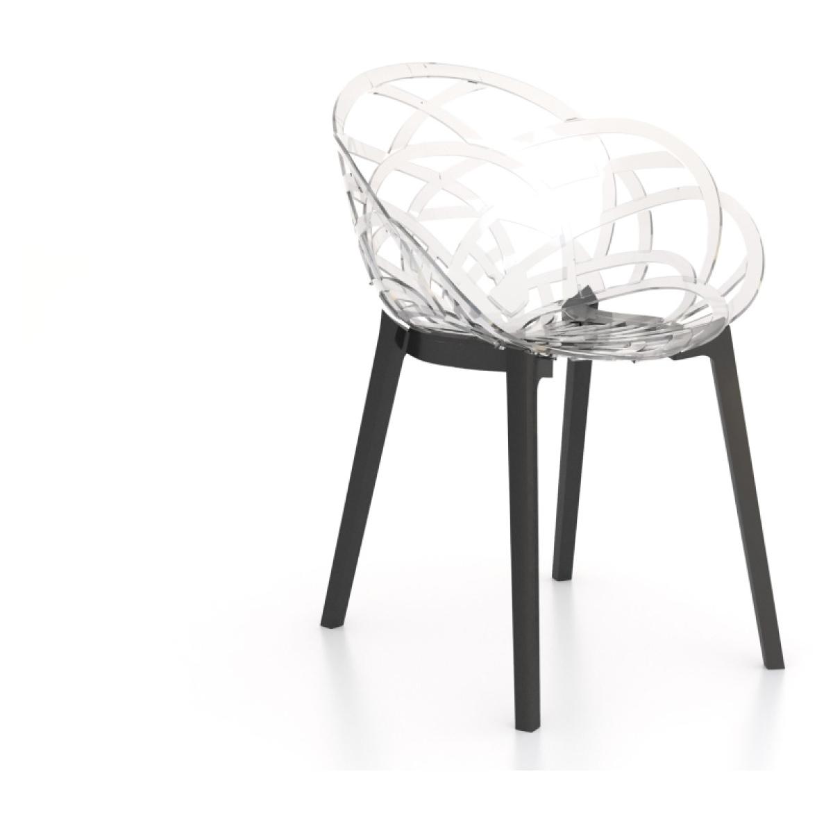 I love the Flora chair’s transparent seat for the way it keeps a dining nook feeling light and spacious, making it ideal for smaller kitchens or open-plan apartments. It works equally well in a Scandi-inspired scheme alongside pale oak tables or in an industrial loft to offset raw textures. For practical styling, add a slim, muted cushion for comfort without hiding the form, and balance the look with a simple pendant light above the table to emphasise its sculptural silhouette.