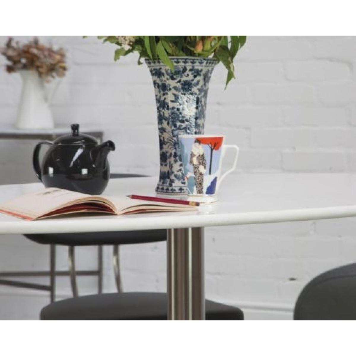 I’m a fan of this Helsinki oval table for its clean lines and sturdy stainless-steel base, which make it equally at home in a sleek city apartment or a pared-back Scandi-inspired kitchen. Its white top reflects light and visually widens smaller rooms, while the oval shape keeps traffic flowing around it. For styling, I’d keep accessories minimal - a single ceramic vase or a low bowl of seasonal fruit - and layer in natural textures through woven placemats or a simple jute runner to soften the metal edge.