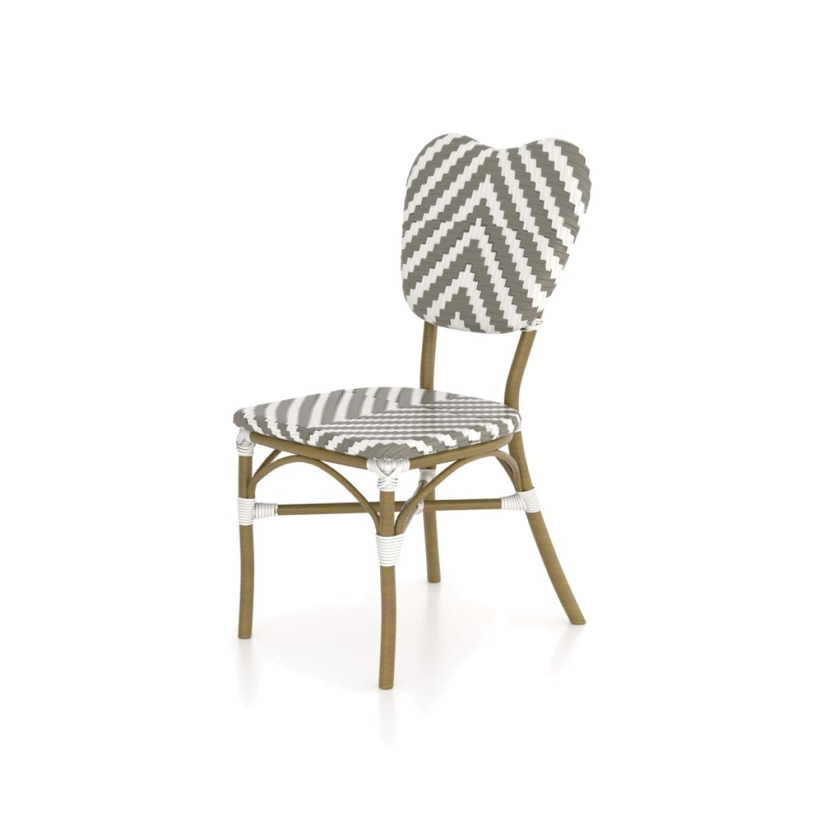I’m a big fan of this grey-and-white rattan chair because its woven texture and gentle curve bring both comfort and visual interest without overwhelming a space. The neutral palette makes it easy to slot into Scandi-inspired kitchens, coastal conservatories or even an urban dining nook, while the aluminium frame keeps it lightweight and durable for everyday use. For styling, pair it with a simple timber table and soft-textured linen placemats to balance the crisp pattern. Add a couple of solid-colour cushions in muted tones if you want extra comfort, or mix with natural-fibre rugs and potted greenery to complete a relaxed, lived-in look.