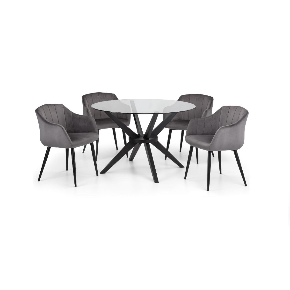 I love this set of two scalloped dining chairs for their modern take on classic curves, adding a subtle softness to the dining area. The grey tone ensures they are versatile, working well in both contemporary and more traditional interiors. They’re ideal for creating a streamlined look in minimalist spaces, or adding a sophisticated touch to a cosy breakfast nook. Practical styling tips include pairing them with a wooden or neutral-toned table to highlight their detailing, and incorporating textured cushions for extra comfort and visual interest. These chairs can effortlessly elevate a dining room by combining functional design with understated elegance.