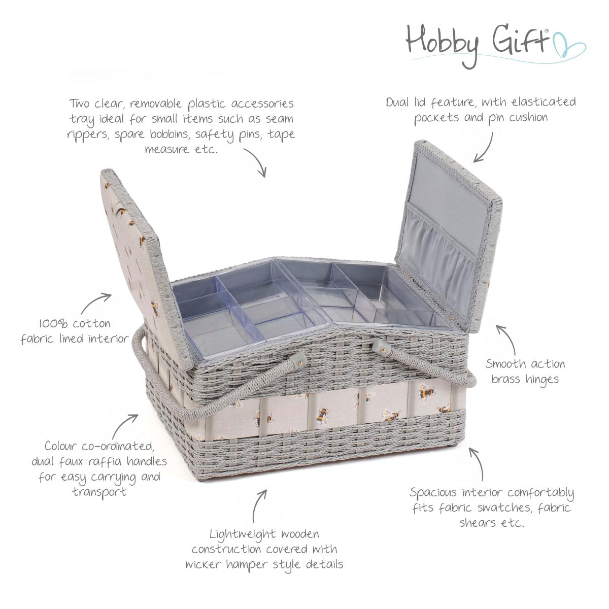 Hobby Gift Bee Wicker TwinLid Sewing Basket