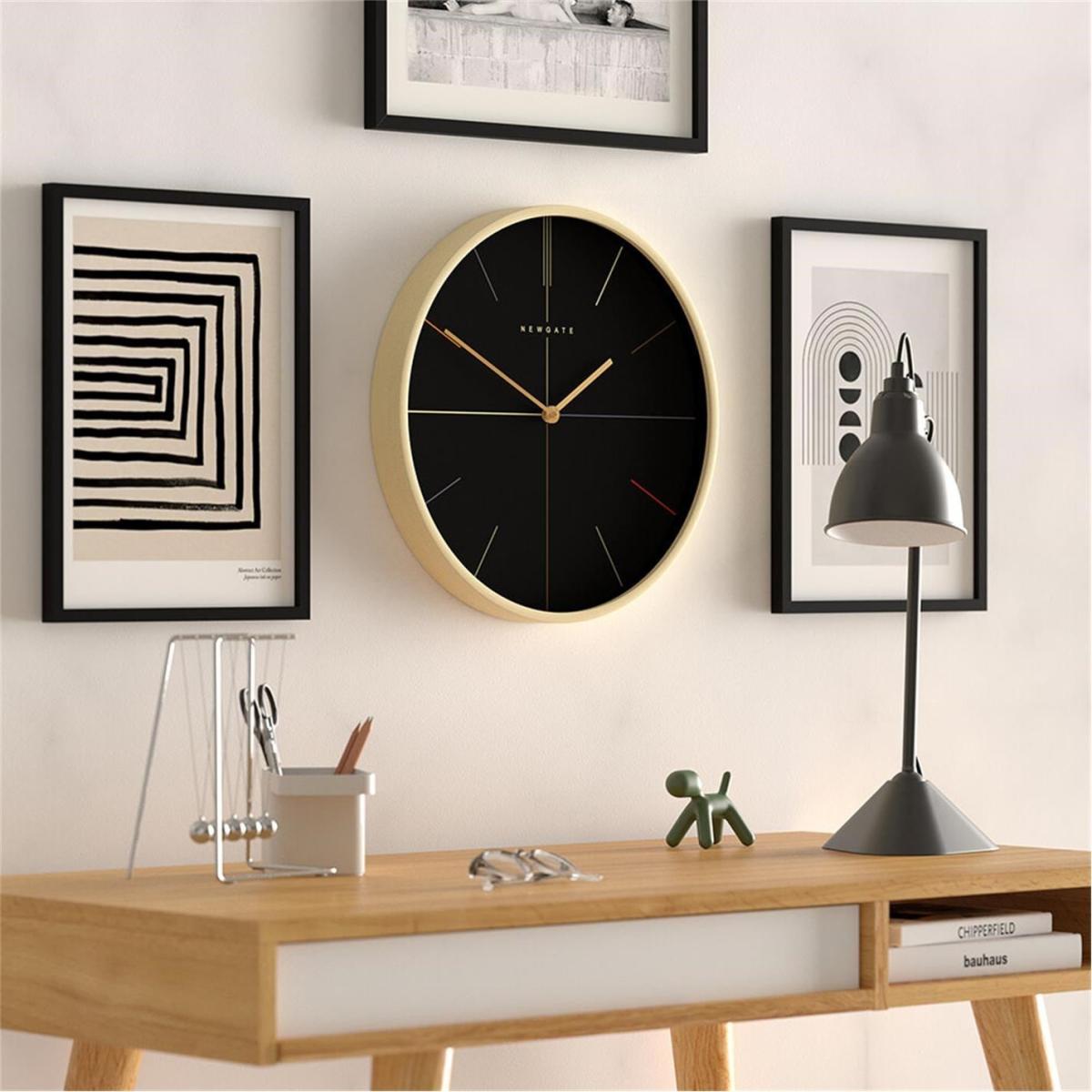 I love this clock for its sleek, minimalist design that makes it a versatile addition to various interiors. Its monochrome palette with subtle accents works well in contemporary or mid-century spaces, adding a touch of understated sophistication. When styling, consider placing it in a pared-back living area or kitchen where its clean lines can be appreciated without competing with other decor. Practical tips include hanging it at eye level for easy reading and pairing with simple accessories to maintain a cohesive look. Its understated elegance makes it a functional yet stylish focal point that seamlessly blends form and function.