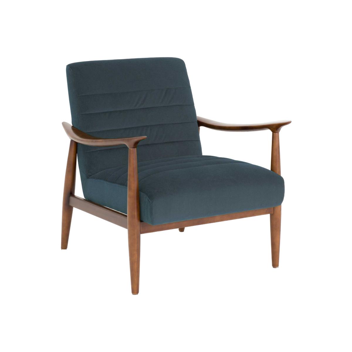 I’m a fan of the Hockney chair in blue velvet for its well-proportioned mid-century frame and the depth of the upholstery - it gives just enough colour without overwhelming a scheme. It sits comfortably in a Scandi-inspired living room or alongside warmer woods and metallic accents in a more eclectic space. For styling, pair it with a neutral sheepskin or textured linen cushion to balance the plush velvet, and position next to a slim-line side table or tripod floor lamp to emphasise those elegant armrests. It’s equally at home on a soft jute rug or contrasting geometric print carpet.
