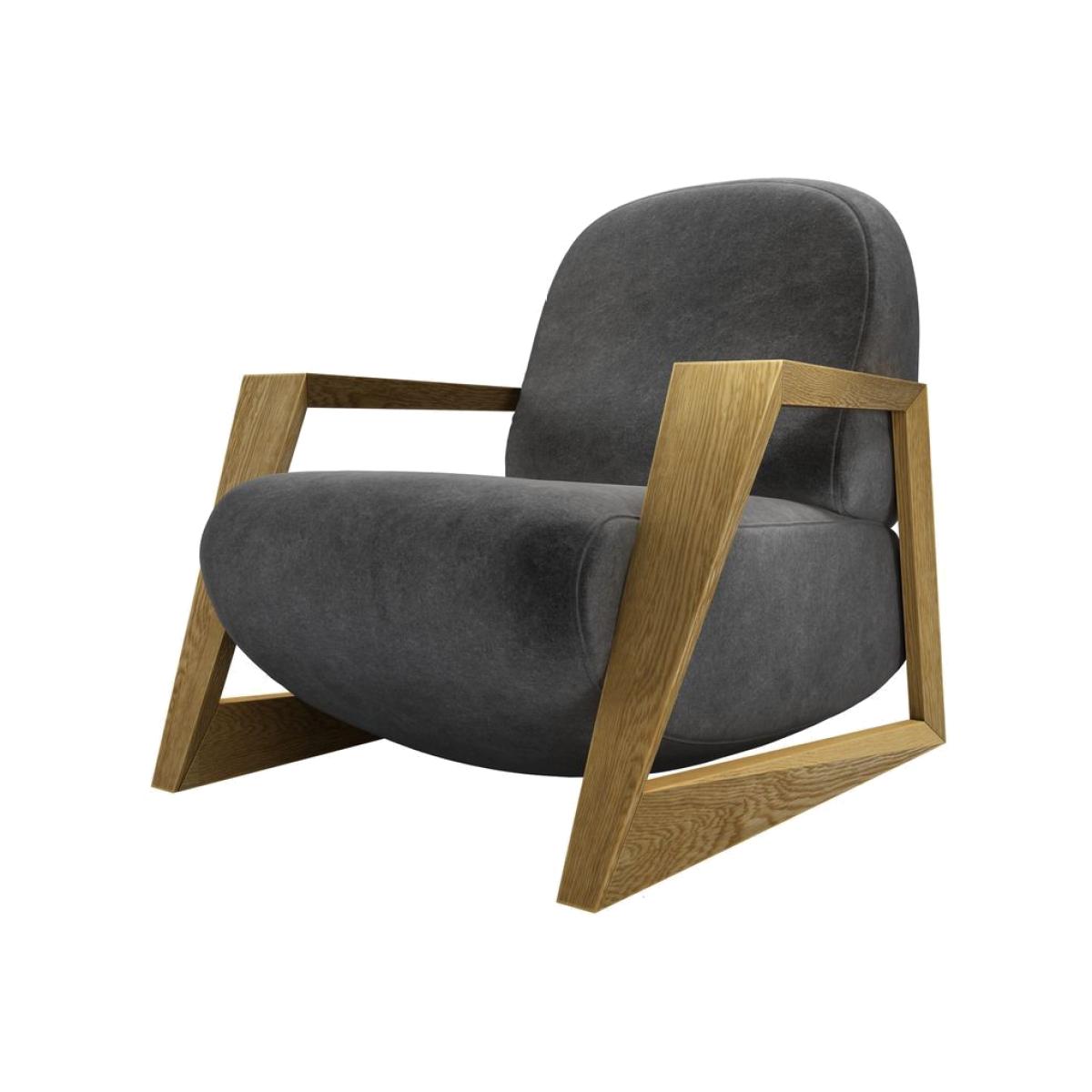 Taking a slice of inspiration from 1980's Danish design, our Hockney armchair is sure to introduce suave style into your home. Bring a touch of the outside in with sleek wooden, angular arms that shape a beautiful juxtaposition with its curved bulbous base. The round foundation elevates the chair from the floor to create a unique, statement piece perfect for any contemporary living space.