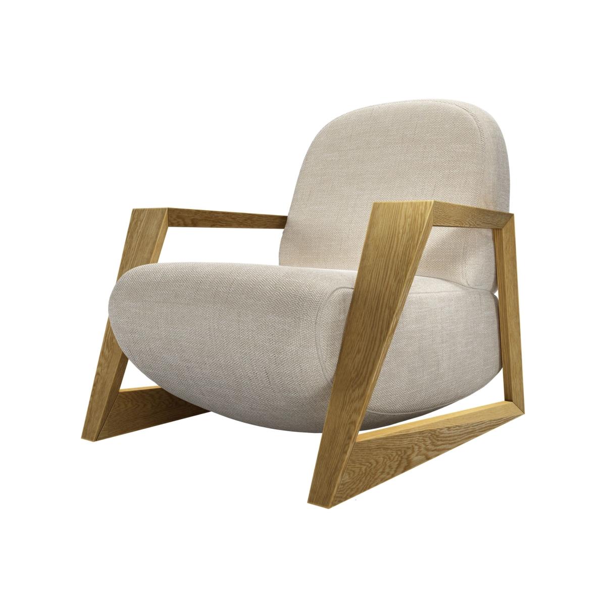 Taking a slice of inspiration from 1980's Danish design, our Hockney armchair is sure to introduce suave style into your home. Bring a touch of the outside in with sleek wooden, angular arms that shape a beautiful juxtaposition with its curved bulbous base. The round foundation elevates the chair from the floor to create a unique, statement piece perfect for any contemporary living space.