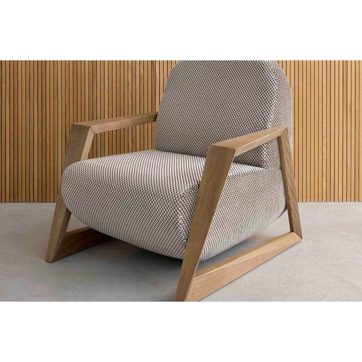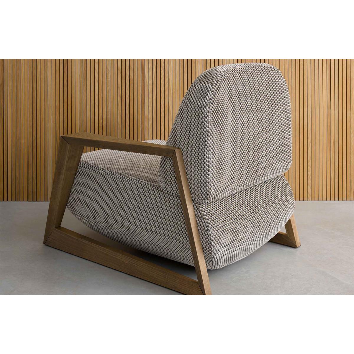 Taking a slice of inspiration from 1980's Danish design, our Hockney armchair is sure to introduce suave style into your home. Bring a touch of the outside in with sleek wooden, angular arms that shape a beautiful juxtaposition with its curved bulbous base. The round foundation elevates the chair from the floor to create a unique, statement piece perfect for any contemporary living space.