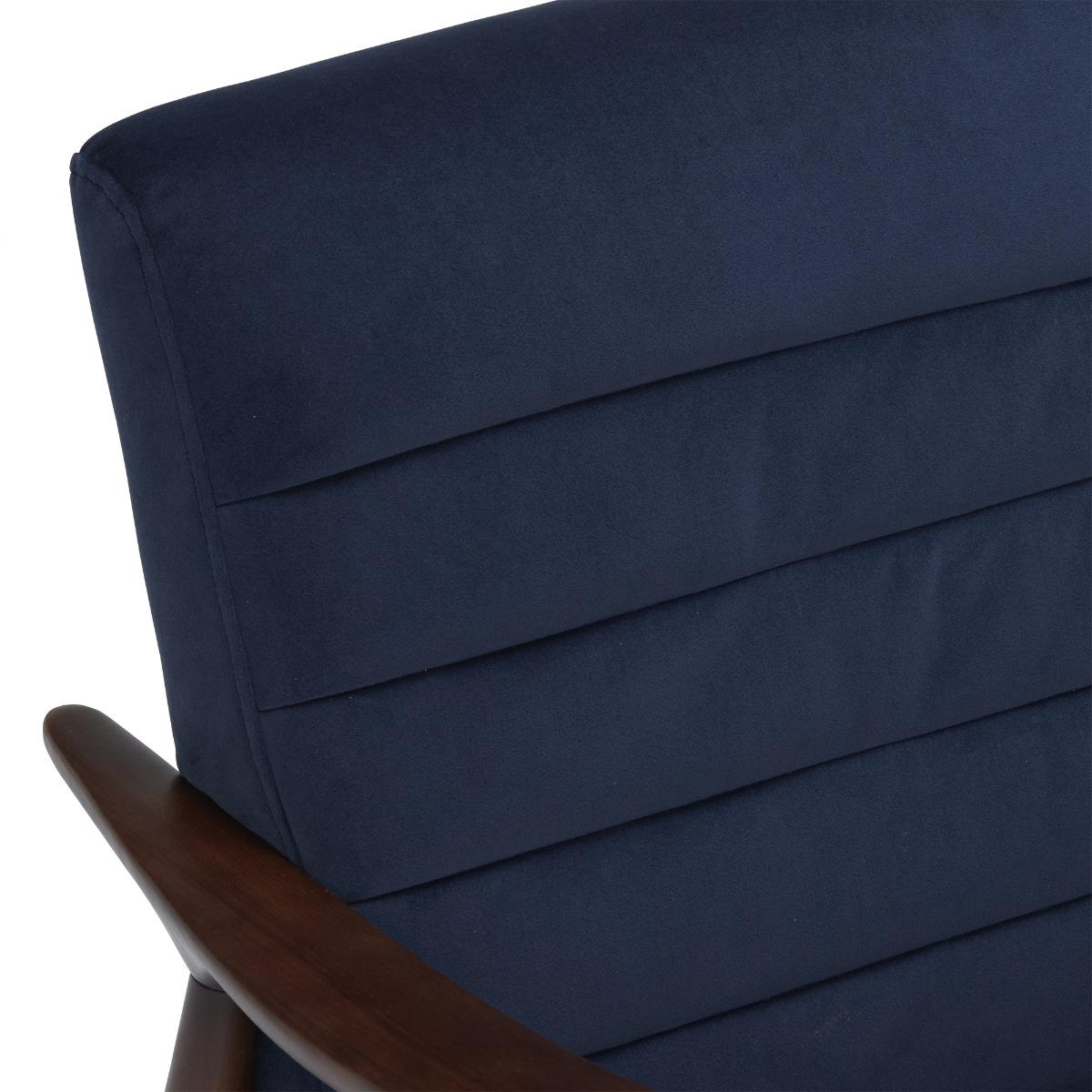 The beautiful Hockney Velvet Armchair, Blue is the perfect addition to your contemporary living space. Boasting a luxurious charm,thesoftfoam andfibreseat cushions are wrapped in a sumptuousdeepblue velvetdetailed with modern horizontal lines andcomplementing the rich, dark wooden arms and feet. Stylishand super comfortable, take time to sit back and relax whilst reading your favourite bookonthe sublime Hockney Velvet Armchair.