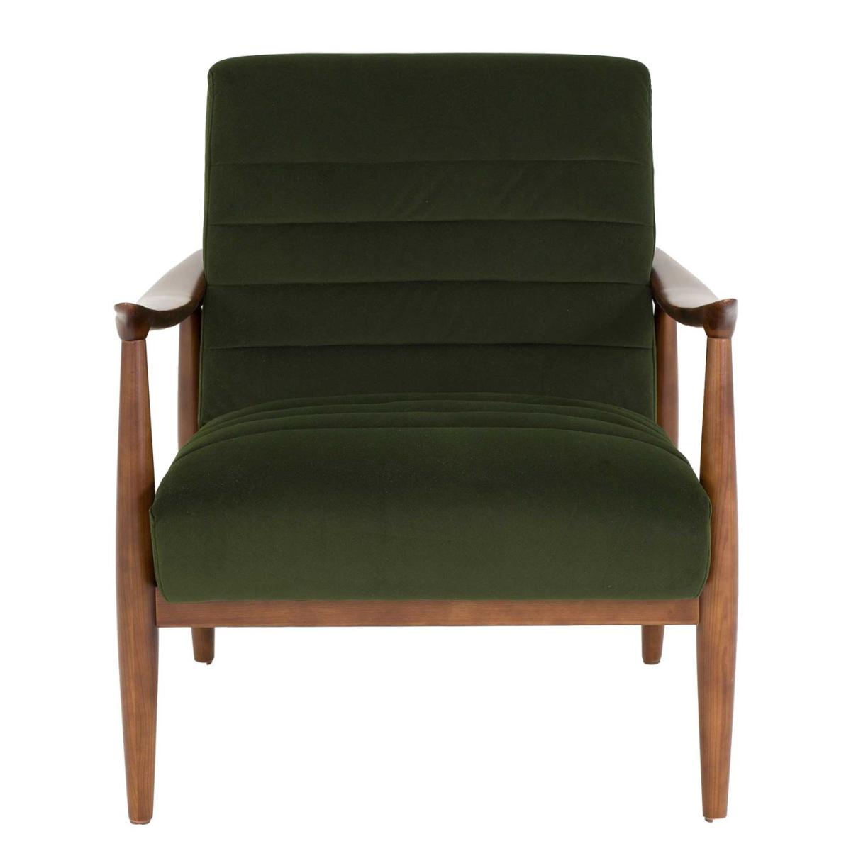 I’m a fan of this velvet armchair for its clean lines and rich olive upholstery - it brings a touch of mid-century character without feeling dated. It works brilliantly in Scandi, contemporary or retro-inspired schemes, slotting easily alongside light timbers and neutral walls. For styling, position it beside a slim side table and floor lamp to create a cosy reading nook. Soften the look with a neutral sheepskin throw over one arm and add a single patterned cushion to break up the straight lines and inject a bit of personality.