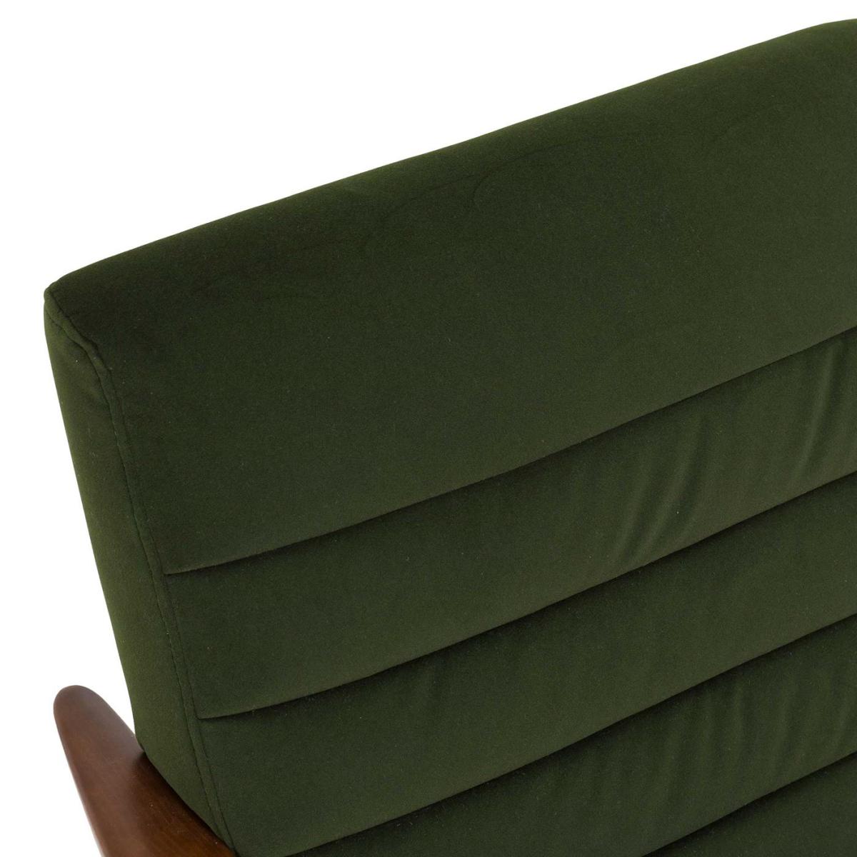 I love this armchair for its classic mid-century silhouette with a contemporary twist, thanks to the rich velvet upholstery. It works beautifully in both modern and traditional interiors, adding a touch of luxe without feeling overly formal. To style it effectively, pair it with neutral or textured cushions to create a cosy corner, or use it as a statement piece in a minimalist scheme. Practical tips include balancing its bold colour with earthy tones or muted furniture, and positioning it near a reading nook or beside a small side table to enhance functionality. Its compact size also makes it versatile for smaller spaces or to add a statement accent in living rooms and bedrooms alike.
