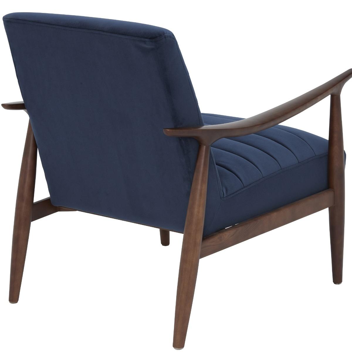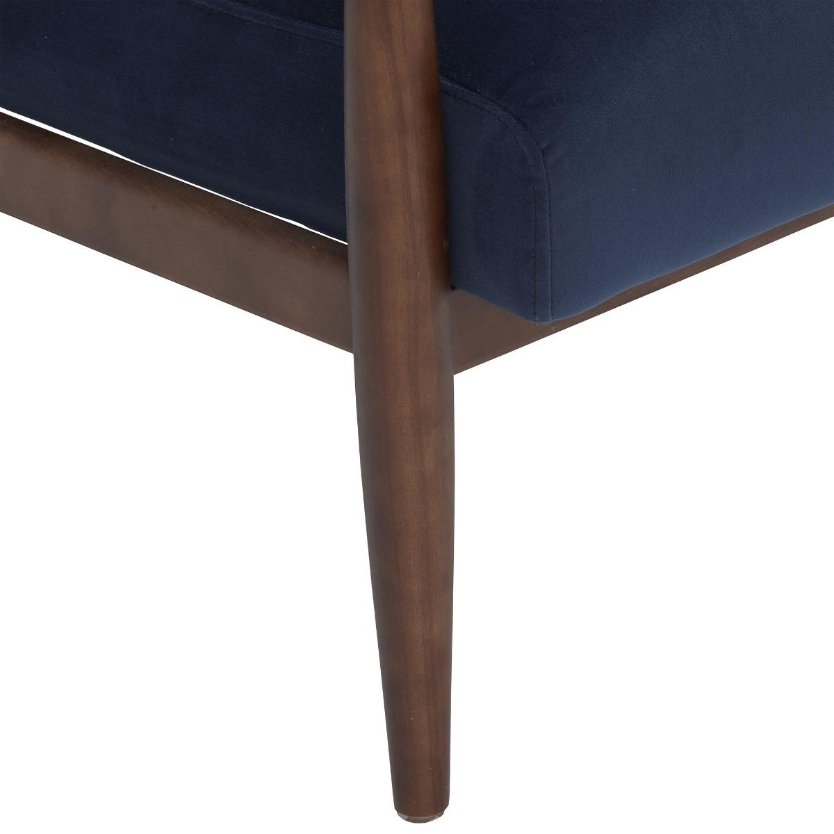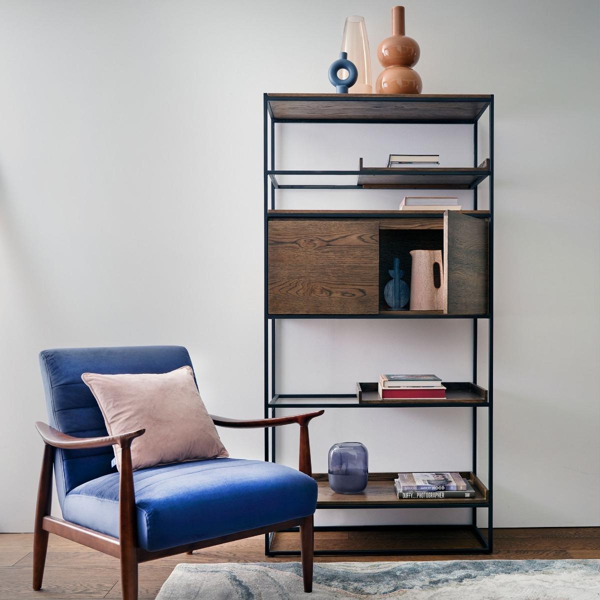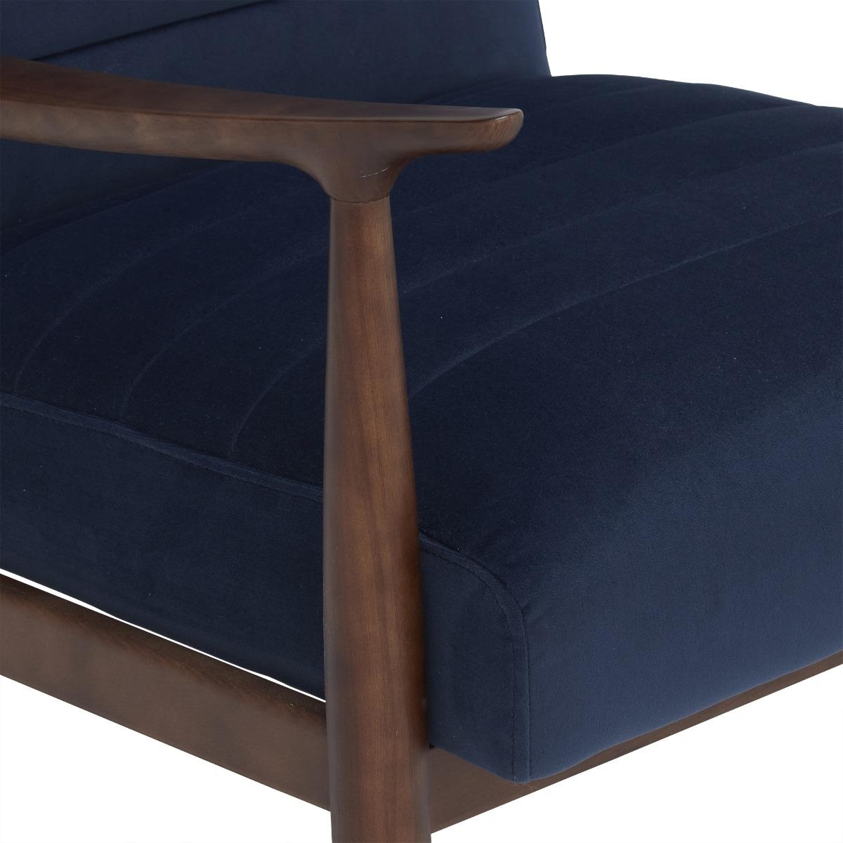 I’m a big fan of this velvet armchair for its clean lines and rich navy tone - it slots easily into mid-century, Scandi or contemporary schemes. The slender walnut frame keeps it feeling light, so it works well in smaller living rooms or as a statement piece in a study or reading nook. For styling, pair it with a simple wool throw or a geometric cushion in ochre or soft grey to lift the blue, and place it beside a slim floor lamp or a round side table in warm timber. Its compact proportions mean you can mix it with a low-profile sofa or use two as accent chairs without overcrowding the space.