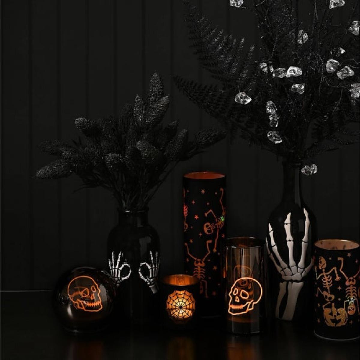 I love this spooky-themed fruit bouquet for adding a quirky, seasonal touch to interiors. The black artificial fruit and foliage bring a playful edge, making it perfect for Halloween or gothic-inspired spaces. Its skeleton hand vase makes a bold statement and works well in eclectic or modern interiors that embrace unconventional accessories. Practical styling tips include placing it on side tables, mantels, or as a centrepiece for themed parties. It pairs nicely with dark wood or metallic accents, and its longevity means it can stay in place year-round if desired. Overall, it’s a fun and versatile piece that injects personality and a touch of the macabre to any room.