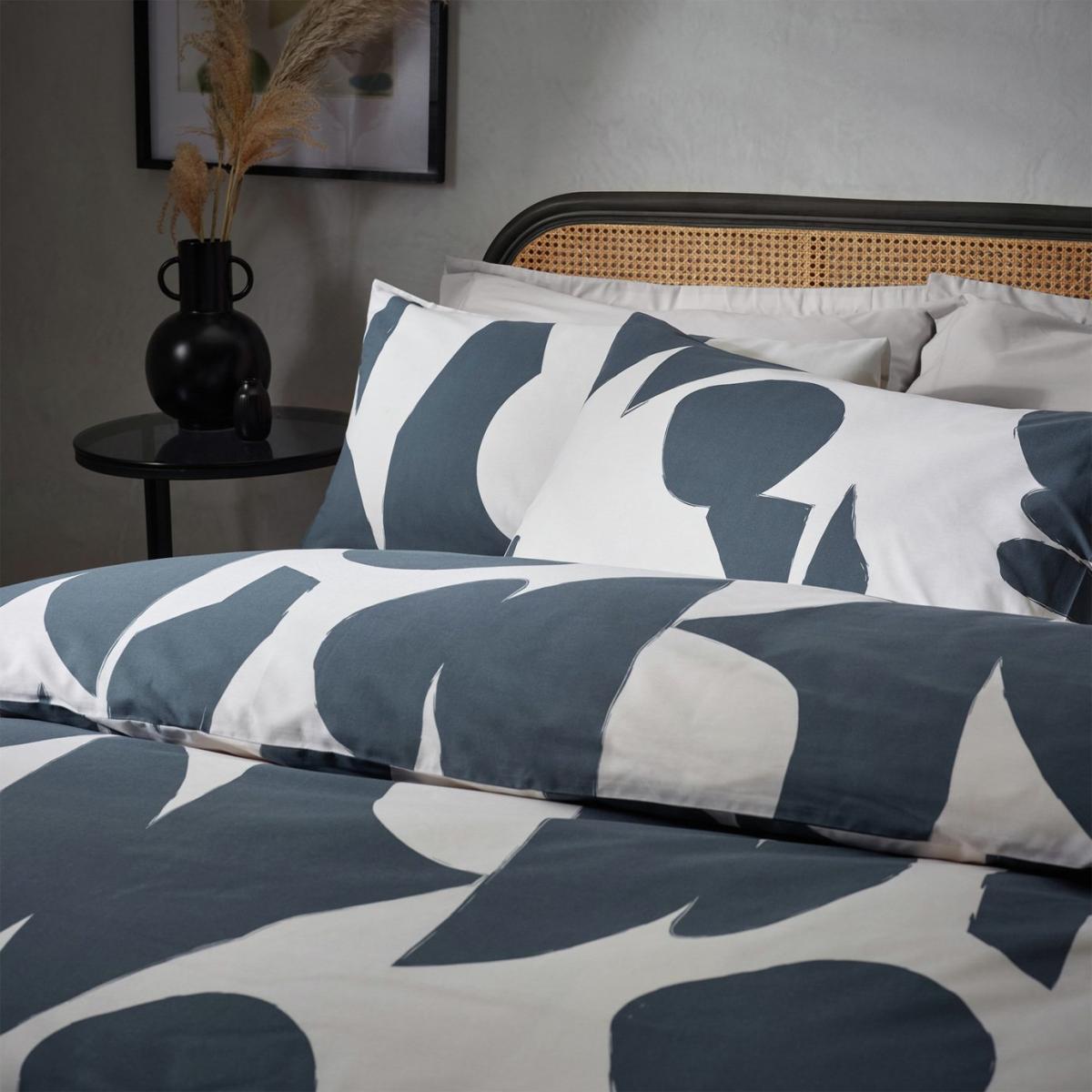 Enjoy a restful night's sleep in the timeless Meta duvet cover set. Inspired by modern, minimalist and abstract art, it features fluid marks and angular shapes, fused together on a warm, relaxing neutral background. The reverse is identical to the front and is printed onto soft, cotton rich fabric for a comfortable night's rest. This product is certified by OEKO-TEX® showing it has been sustainably made. Featuring a multitude of printed abstract shapes printed on soft, cotton rich fabric. This item carries the STANDARD 100 by OEKO-TEX logo, which means you can be certain that every component has been tested for harmful substances and is therefore harmless to human health. 60% cotton , 40% polyester. 60% cotton, 40%polyester. 144 thread count. Set includes 1 duvet cover and 1 pillowcase. Bed size: single. Length 200cm, Width 135cm. Buttons for fastening. Standard pillowcase (s). Pillow case length 75cm, Width 50cm. Machine washable.