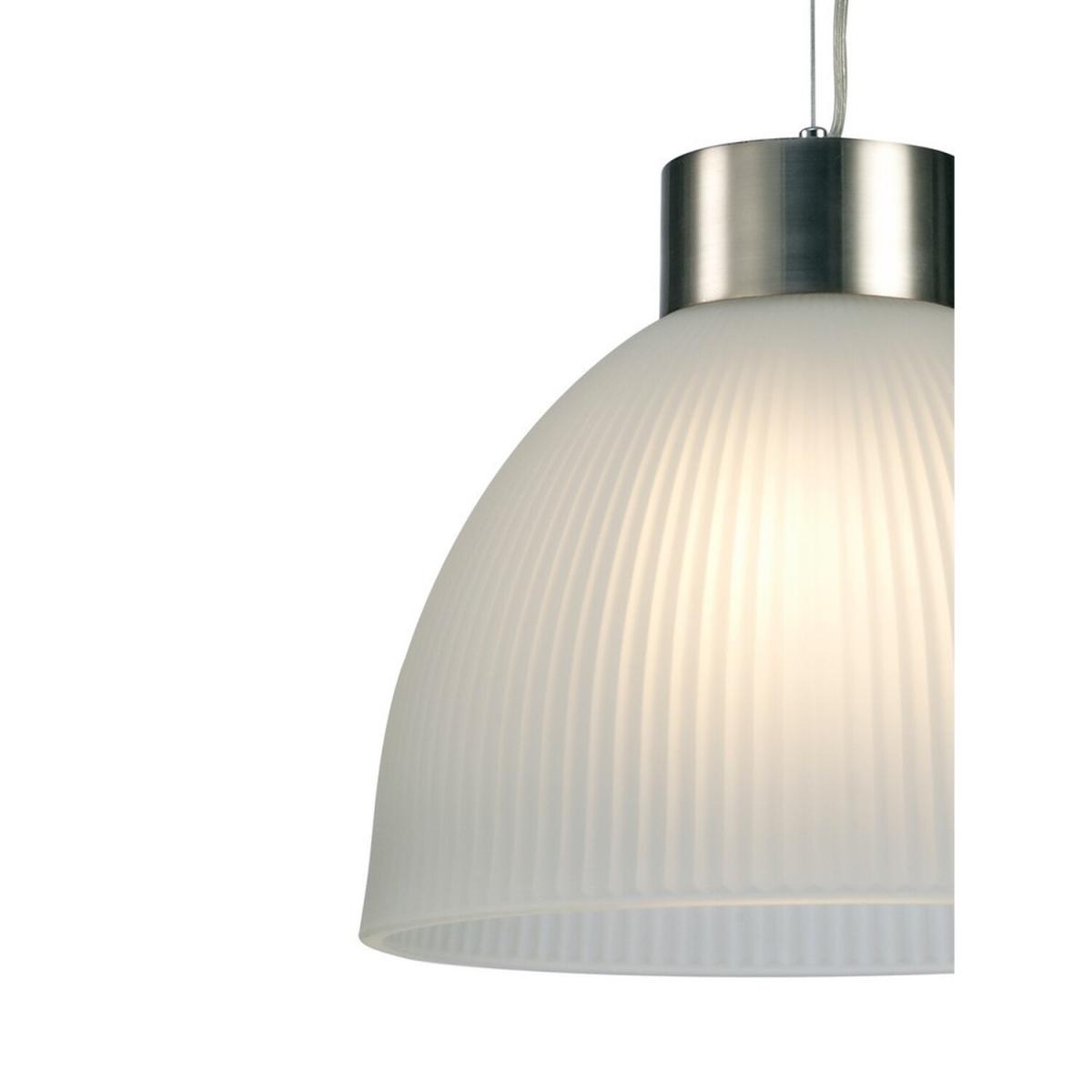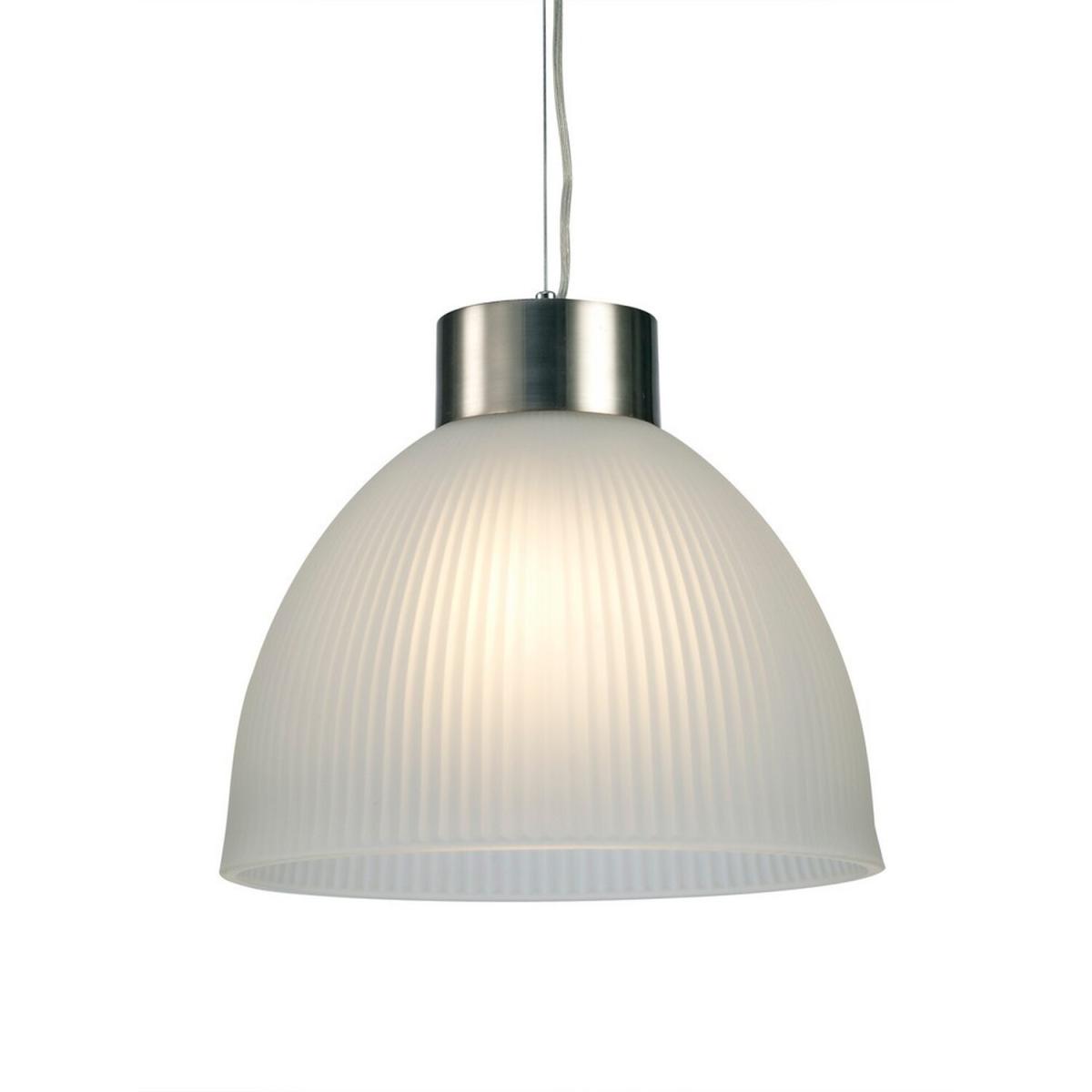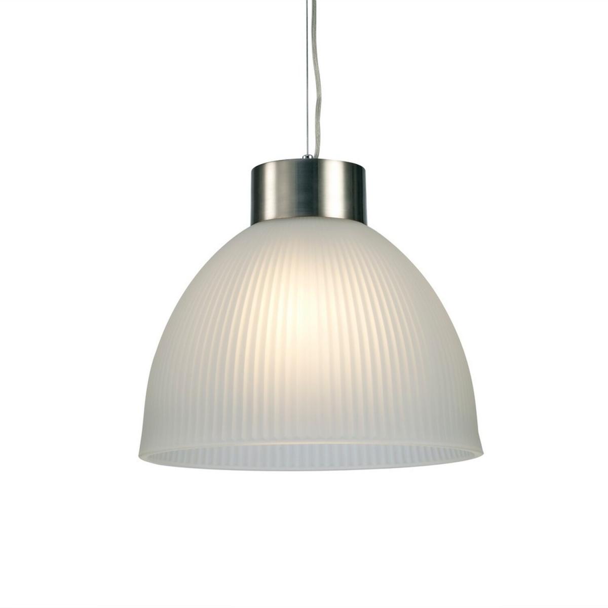 Hof Dome Ceiling Pendant E27, Satin Nickel, Frosted Ribbed Glass Shade - Satin Nickel