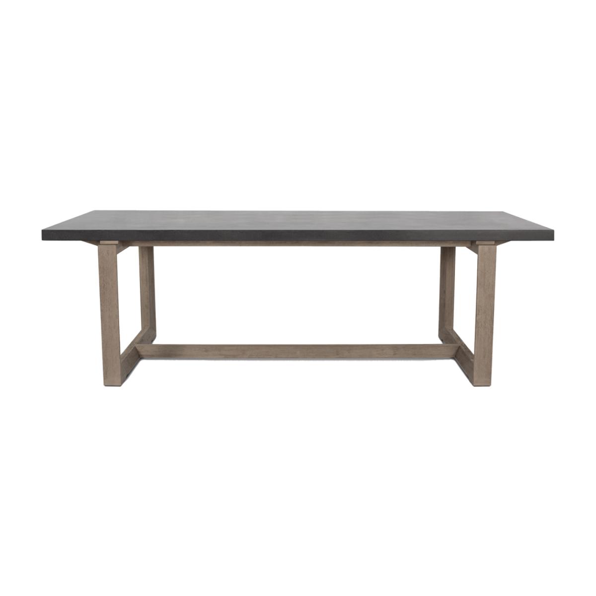 Our Hokela Dining Table is all about connection - both in it's design and its ability to bring people together thanks to its large size. It's legs are formed from continuous, solid teak that are wire-brushed and hand painted for a textured, authentic wood finish. An invisible addition of stainless steel in the long aprons provides extra strength and stability for the long cast-concrete tabletop that seats up to eight people. The concrete has been sealed to avoid staining - although we would always recommend using a tablecloth if you're having a big dinner party - and has a pleasing smooth finish. Hokela Dining Table - Charcoal