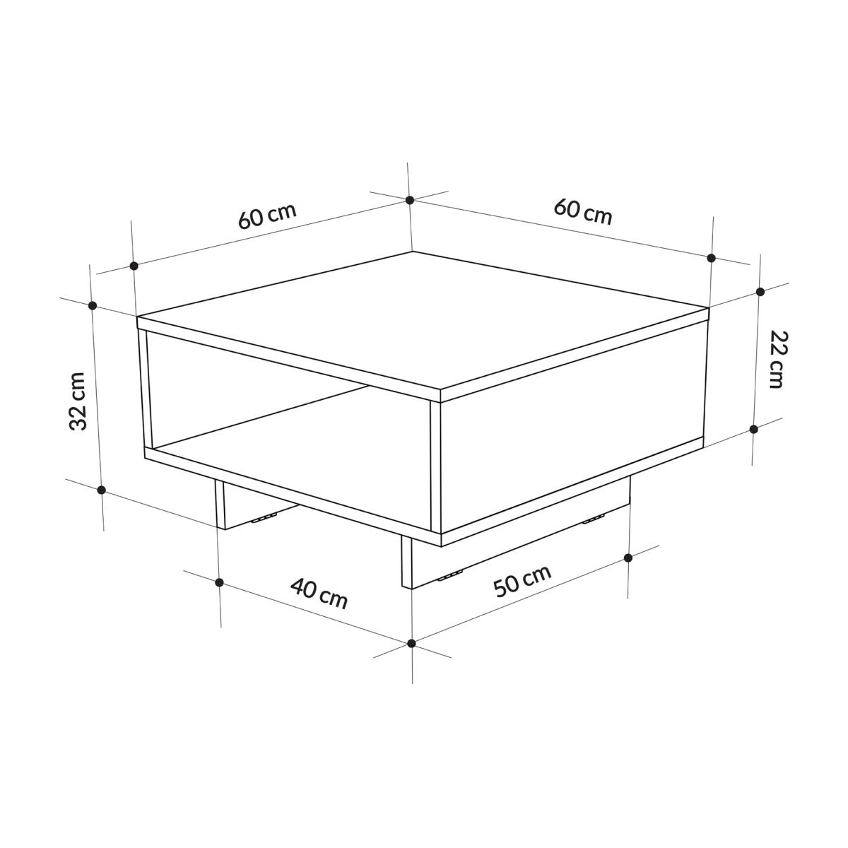 Looking for a modern and elegant square coffee table to spruce up your living room? You've found it! Our unique square coffee table is just what you need. Measuring 60 x 60 x 32 cm, it can fit into any space with ease. The open compartment doubles as a chic magazine rack or shelf, making it perfect for storing magazines, books, and other items. You can choose from various colors to match your decor. Crafted from high-quality engineered wood and finished with a protective melamine coat, our coffee table combines contemporary style with durability. Plus, our packaging ensures secure delivery, and assembly is a breeze with clear instructions. Maintenance is easy peasy! All you need is a damp cloth to keep it clean - no need for any harsh chemicals. Let us help elevate your living room with this functional and stylish coffee table. Don't hesitate to contact us for an enhanced experience!