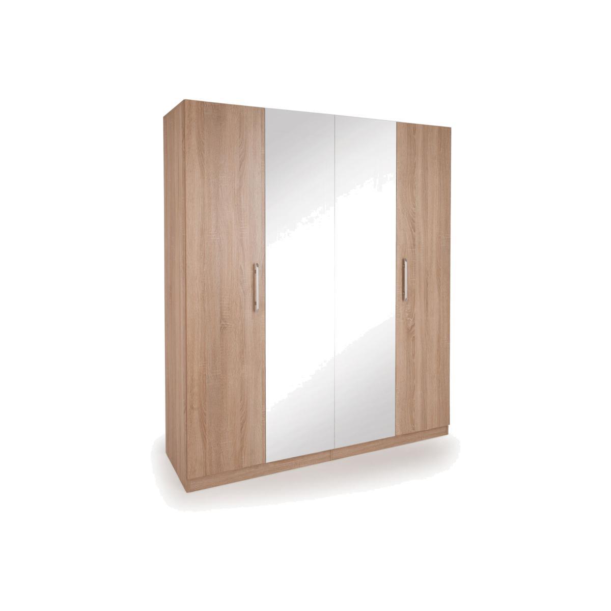 I’d recommend the natural 4-door mirrored wardrobe for its clean lines and light oak finish, which bring a warm, contemporary feel to bedrooms without overwhelming the space. The full-length mirrors double up as a handy dressing aid and bounce light around smaller rooms, making it ideal for both modern Scandi schemes and more transitional interiors. To style it, keep the area in front clear so the mirrors can work their magic and pair it with textured rugs or woven baskets to introduce subtle contrast. Tuck in matching bedside tables or a slim dressing table nearby to maintain a cohesive look.