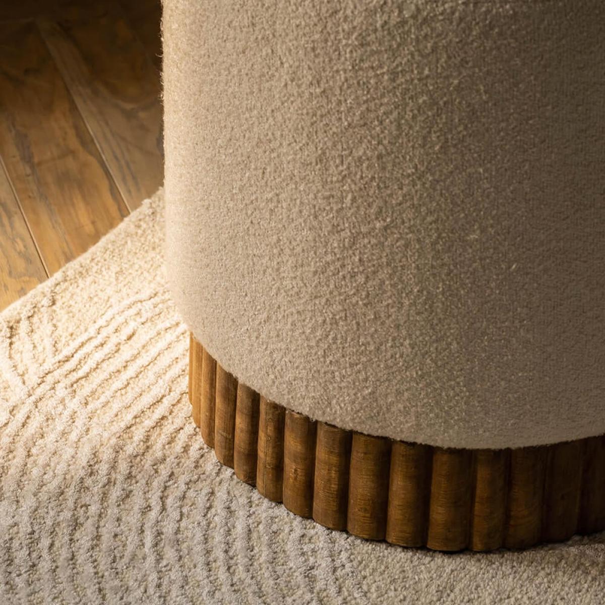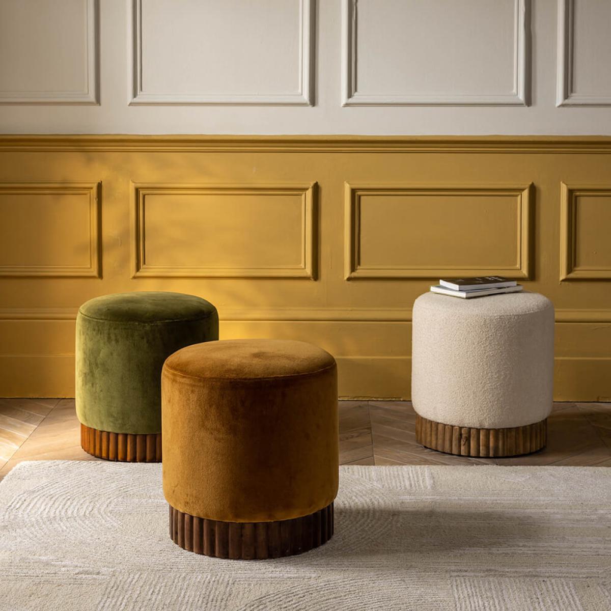 Upholstered in on-trend natural boucle – a looped yarn – and featuring a unique fluted base, our small wooden footstool is just the thing for kicking back and relaxing. Whether in the dressing room, bedroom or living room, Holborn adds a pop of style to any space, while providing a practical seat or footrest. When not in use, stack with coffee table books to create a stylish focal point. Also available in mustard velvet or green velvet upholstery.