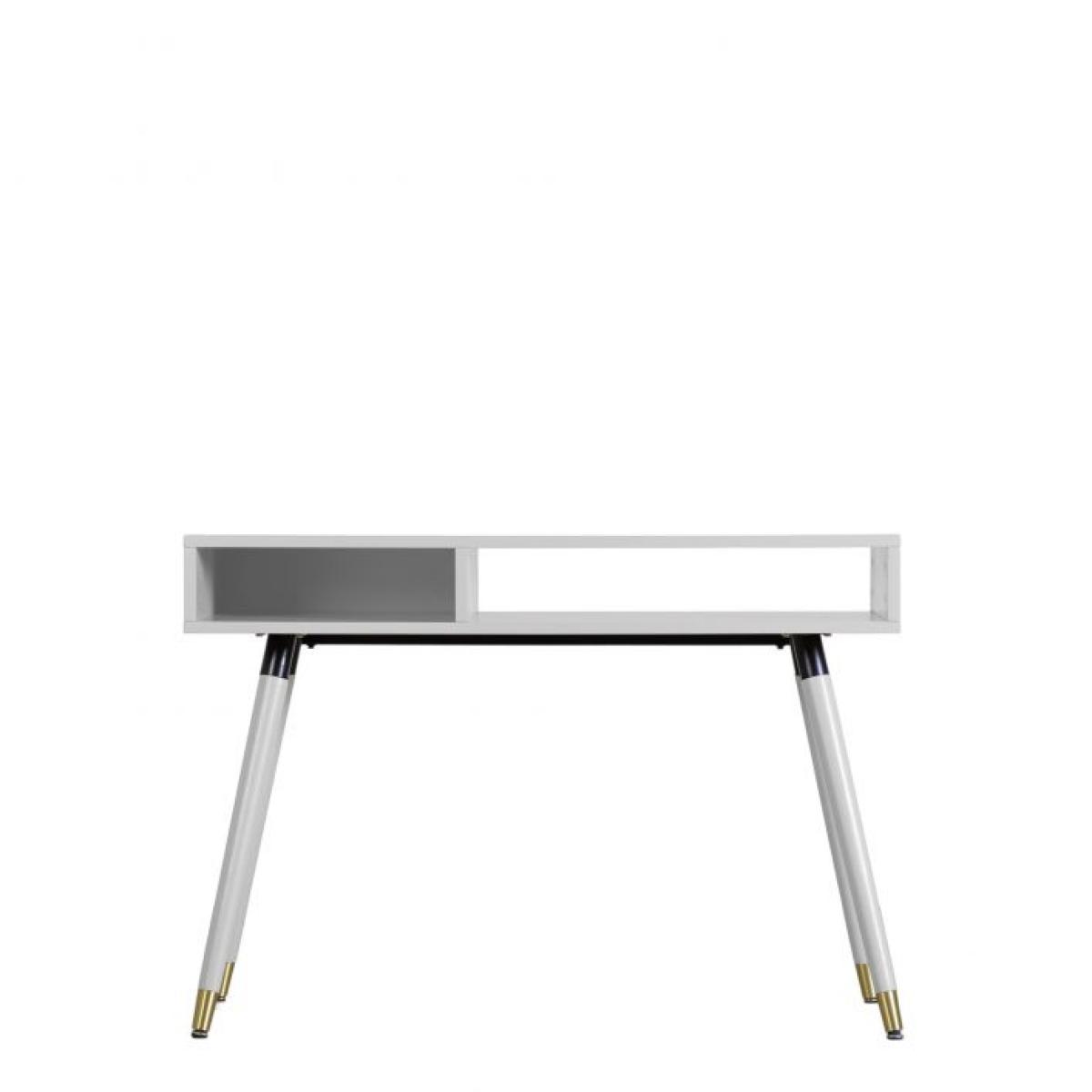 This lovely white console table makes an eye-catching feature piece. The table features a storage area, with the left-hand section having a back whilst the larger right-hand section is open. Brass ‘socks’ on the painted solid oak legs add the finishing design detail. The table is also available in four other colours, and the collection also includes other matching and coordinating pieces. The collection of living furniture is part of our Packed-Flat Design Project, offering easy delivery to any room in any property, whilst reducing the packaging needed. Easy assembly is required, but all the tools needed are supplied.