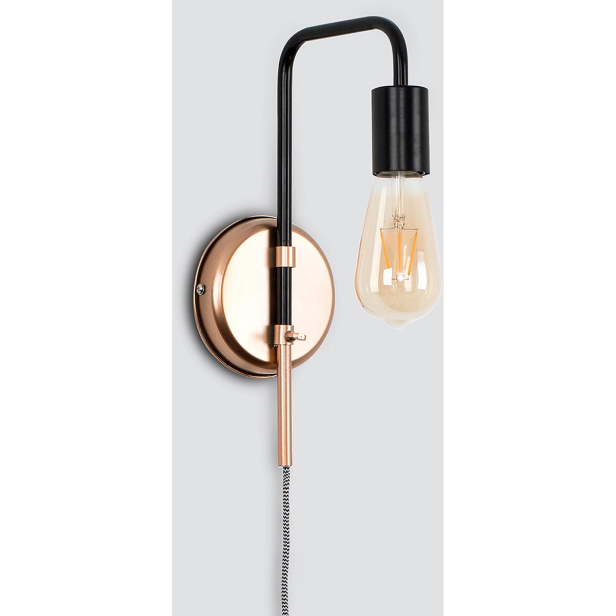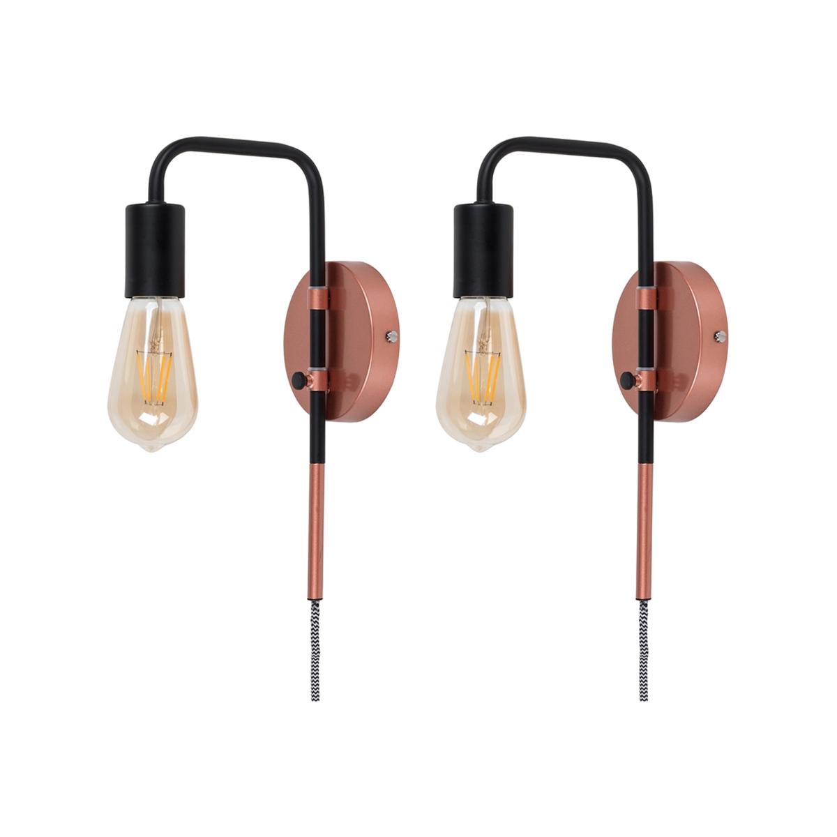 Pair of vintage and industrial style pipework swing arm wall light fittings in a satin black and copper effect metal finish. Features an in-line onoff switch on a braided flex. These unique lights can be paired with a filament light bulb which will make a real style statement and complete your living space look. Ideal for dining rooms, kitchens and other living areas.
