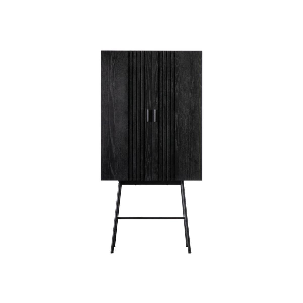 This stunning drinks cabinet offers a striking contemporary look, with the slatted design on the doors adding interest. Crafted using solid oak for the slats and oak veneers, the matt black finish beautifully shows the grain of the wood and pairs perfectly with the matt black metal legs. Matt black solid oak handles add the finishing touch. Internally, each cupboard has two adjustable shelves for added practicality. The cabinet is part of a collection which offers a selection of cabinets. The collection is part of our Packed-Flat Design Project, offering easy delivery to any room in any property, whilst reducing the packaging needed. Easy assembly is required, but all the tools needed are supplied. Material:Oak Veneer. Colour/Finish: Black.
